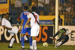de pé direito, e abriu o placar para o Vasco, na falha do goleiro