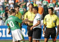 FICHA TÉCNICA PALMEIRAS 5 X 2 VASCO Data-Hora: 18/06/2005, às 16h (horário de Brasília) Local: Estádio do Parque Antarctica, em São Paulo(SP) Árbitro: Wilson de Souza Mendonça (PE). Auxiliares: Erick Bandeira (PE) e Luciano José Coelho (PE) Gols: 19'/1ºT - Romário (VAS); 14'/2ºT - Pedrinho (PAL); 18'/2ºT - Marcinho (PAL); 35'/2ºT - Marcinho (PAL); 37'/2ºT - Marcinho (PAL); 44'/2ºT - Romário (VAS); 46'/2ºT - Correa (PAL) Cartões amarelos: Gioino e Alceu (PAL); Thiago Maciel, Maciel, Éder, Júnior e Ives (VAS). PALMEIRAS: Sérgio; Correa, Nen, Leonardo Silva e Lúcio (Fabiano); Marcinho Guerreiro, Alceu, Juninho e Cristian (Pedrinho); Marcinho e Gioino (Washington). Técnico: Paulo Bonamigo. VASCO: Erivélton; Thiago Maciel, Alemão, Éder e Maciel; Coutinho, Ives (Abedi), Ygor (Júnior) e Dominguez (Willian); Alex Dias e Romário. Técnico: Dário Lourenço. Fonte: Pelé.Net (texto), Lancenet (ficha), Lance (fotos), O Globo on line (fotos) |
