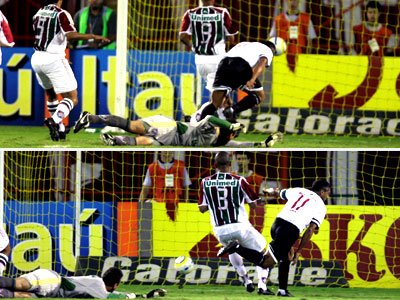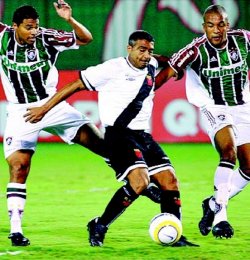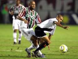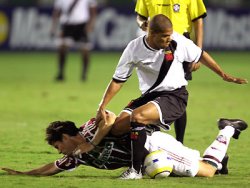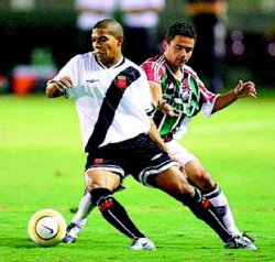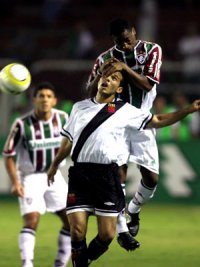 | NETVASCO - 04/08 - 22:32 - Vasco é derrotado pelo Fluminense de virada: 3 a 2 A genialidade de Romário e Felipe ficaram em segundo plano. Nesta quinta-feira, foi a vez de Milton do Ó fazer a diferença na vitória do Fluminense sobre o Vasco por 3 a 2, de virada, no estádio Raulino de Oliveira, em Volta Redonda. O líbero, que fazia sua estréia pelo time das Laranjeiras no lugar do ídolo Marcão - que foi para o futebol árabe -, acabou marcando o terceiro em um belo chute no ângulo de Roberto e garantiu os três pontos, após cinco rodadas de jejum. Com excelente atuação do veloz atacante Beto, que marcou o segundo gol em um belo passe de Felipe, e o oportunismo de Tuta, o Fluminense compensou as falhas clamorosas de sua defesa, dentre elas a que originou o primeiro gol do Vasco, de Romário, que ultrapassou Zico e agora é o segundo maior artilheiro isolado em Campeonatos Brasileiros. O craque ainda deu o passe para o segundo, de Diego. Depois de cinco meses, Felipe retornou aos gramados e foi muito bem marcado no primeiro tempo. Ainda sentindo a falta de ritmo de jogo, não teve grande atuação, mas acabou iniciando lances de dois gols. Enquanto isso, a defesa vascaína manteve o costume. Mais três gols sofridos e a pior defesa disparada da competição, com 44. Com 15 pontos, a equipe de São Januário permanece na zona de rebaixamento. Renato sofreu a terceira derrota em cinco jogos no comando da equipe, apesar de, pela primeira vez, ter saído a frente no placar. Na próxima rodada, o time volta a São Januário e encara o Figueirense, domingo às 16h. O Fluminense vai a 28 pontos e se mantem na nona colocação. Na próxima rodada, vai ao Mineirão e pega outra equipe em desespero: o Atlético-MG, também no domingo, mas às 18h10. O JOGO Mostrando maior disposição no início de jogo, o Vasco abriu o placar logo aos 6min. Alex Dias deu passe na medida para Romário, entre dois zagueiros, na meia-lua. Surpreendentemente, o jogador de 39 anos ganhou na corrida, se antecipou e tocou na saída de Kleber. Desarrumada, a defesa tricolor permitia um gol pelo oitavo jogo consecutivo, com a colaboração do estreante Milton do Ó. O lance, porém, fez com que o Vasco recuasse e o Fluminense fosse para o ataque. As jogadas, entretanto, acabavam concentradas em Felipe, que tinha dificuldades com a marcação homem-a-homem do volante Ygor. Aos 25min, o time tricolor já tinha finalizado cinco vezes, contra apenas três dos vascaínos. No minuto seguinte, Gabriel deu entrada ríspida em Diego, na corrida, e merecia o cartão vermelho. Recebeu apenas o amarelo. Com mais posse de bola, porém sem criatividade, o time das Laranjeiras não levava perigo à meta de Roberto até que a bola sobrou livre para Tuta dentro da área, após bate-rebate em cobrança de escanteio. O atacante virou e, da marca do pênalti, chutou sozinho, sem defesa para o goleiro do Vasco, aos 37min. "A gente está tomando gol de bobeira, Renato já falou com a gente e continuamos levando gols que não podemos levar", irritou-se Alex Dias, na saída para o intervalo. Como no primeiro tempo, o Vasco começou quente a etapa final. No primeiro minuto, Romário aproveitou contra-ataque rápido e deu passe para Diego pela esquerda, na entrada da área. O lateral Gabriel tirou o corpo para não fazer a falta, Diego penetrou na área, ajeitou para o pé direito e colocou no contra-pé de Kleber, deixando a equipe de São Januário novamente na frente. Insatisfeito com o rendimento de seu meio campo, o técnico Abel Braga tirou Preto Casagrande e colocou Juninho, tentando dar mais ofensividade ao time. Com o mesmo propósito, Renato tirou Osmar e Morais e colocou Abedi e Fernandinho. Aos 19min, o veloz Beto chegou na área e foi obstruído pelo zagueiro Luciano. O árbitro nada marcou. Na seqüência, Romário fez mais um belo lançamento em contra-ataque, Alex Dias entrou livre pela direita, cortou para dentro e chutou cruzado, rente à trave direita de Kleber. O ataque do Vasco se aproveitava das falhas defensivas, dentre elas de cobertura pela esquerda, que o Fluminense insistia em cometer. Foi então a hora de Felipe fazer a diferença. Ele dominou pela direita e deu passe em profundidade para Beto. O jogador avançou dentro da área e chutou de direita. A bola bateu em Ciro e no goleiro Roberto antes de estufar as redes, aos 27min. Aos 32min, Felipe cobrou falta rasteira, a bola bateu na barreira e sobrou para Milton do Ó, que acertou um excelente chute no ângulo esquerdo de Roberto. GALERIA