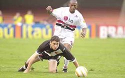 | NETVASCO - 18/09/2005 - 18:03 - Vasco perde para o São Paulo no Morumbi: 4 a 2 São Paulo e Vasco tinham campanhas parecidas no Campeonato Brasileiro. São Paulo e Vasco viviam bons momentos. No entanto, no duelo entre as duas equipes, só os paulistas ratificaram sua ascensão. Jogando no Morumbi, neste domingo, a equipe dirigida por Paulo Autuori bateu os cariocas por 4 a 2. O resultado confirma o excelente momento vivido pelo São Paulo. O time paulista, invicto no segundo turno do Brasileiro, ostenta seis partidas sem conhecer um revés sequer. Neste período, colecionou quatro vitórias e dois empates. Outro que segue em ascensão é o atacante Amoroso. O camisa 37 do São Paulo balançou as redes duas vezes neste domingo e alcançou a incrível marca de 11 gols nos últimos nove jogos do clube tricolor no Campeonato Brasileiro. O grande desempenho de Amoroso freou a reação do Vasco no Brasileiro. O time carioca havia somado sete pontos nas quatro primeiras rodadas do segundo turno do torneio e perde a chance de se aproximar da zona de classificação para a Copa Sul-Americana. O Vasco estaciona nos 32 pontos e é ultrapassado exatamente pelo São Paulo, que alcança 34. O time carioca cai da 15ª para a 16ª colocação e os paulistas ascendem do 16ª para o 13º posto do Campeonato Brasileiro. A queda do Vasco na tabela só é amenizada pelo desempenho de Alex Dias. O centroavante marcou o segundo gol carioca no jogo deste domingo, em cobrança de pênalti, e chegou a 16 no Campeonato Brasileiro. Assim, encostou no artilheiro Róbson (que tem 17). O São Paulo volta a campo às 21h45 da próxima quarta-feira, no Mineirão, para encarar o decadente Cruzeiro (que perdeu as últimas seis partidas que disputou). O Vasco joga apenas no dia seguinte, às 20h30, contra a Ponte Preta. O confronto acontecerá em São Januário, no Rio de Janeiro. O JOGO Utilizando de forma eficiente as laterais do gramado, o São Paulo começou pressionando o Vasco. E logo aos 4min, o time da casa inaugurou o placar. Cicinho cruzou da direita e Amoroso, impedido, apareceu no segundo pau para marcar de cabeça. "Foi um lance muito legal. Treinamos muito esse tipo de jogada e eu fico muito feliz quando consigo colocar a bola na cabeça de um companheiro. É quase como marcar um gol", admitiu Cicinho. O gol desmontou a formação essencialmente defensiva que o treinador vascaíno Renato Gaúcho havia armado. E quando a equipe carioca tentou se lançar ao ataque, o São Paulo ampliou. Josué lançou na esquerda para Christian aos 9min. O centroavante invadiu a área e bateu de pé direito para vencer Roberto. Superior tecnicamente e mais bem postado em campo, o São Paulo foi amplamente superior até o treinador Renato Gaúcho mudar o Vasco. Aos 32min, ele trocou o ineficiente Osmar por Elbinho. A resposta à modificação do técnico foi rápida. Dois minutos depois, Alex Dias arrancou pela esquerda e cruzou. No segundo pau, Abedi tocou de pé direito e venceu o goleiro Rogério Ceni, que nada pôde fazer. Parecia o início da reação do Vasco. Mas só parecia. Aos 39min, Amoroso tratou de ratificar a supremacia técnica do São Paulo. O camisa 37 recebeu na esquerda, atrás da defesa carioca, invadiu a área e chutou de pé direito, no canto direito baixo de Roberto, para ampliar a vantagem dos donos da casa. No entanto, Amoroso sentiu uma lesão muscular no lance do gol e pediu para ser substituído. Sem ele, o São Paulo perdeu sua referência ofensiva e o Vasco assumiu o controle da partida. "Nós começamos muito recuados e isso nos complicou. Quando fomos ver, já estávamos perdendo por 1 a 0. Assim ficou complicado para reagir, mas precisamos manter a calma e seguir procurando o empate", pediu o goleiro Roberto durante o intervalo. O domínio dos minutos finais do primeiro tempo prosseguiu depois do intervalo. O Vasco, melhor em campo, conseguiu criar as melhores oportunidades para marcar. Aos 8min, Alex Dias sofreu pênalti de Edcarlos e bateu no canto direito de Rogério Ceni para diminuir a vantagem dos donos da casa. O São Paulo ainda teve uma excelente oportunidade para conter a reação vascaína. Souza sofreu penalidade aos 15min. Rogério Ceni cobrou com muita força e acertou o travessão de Roberto. O lance manteve o ânimo dos cariocas, mas isso não foi suficiente para ameaçar a vantagem paulista. Prova disso é que o São Paulo teve outra oportunidade para ampliar a vantagem aos 45min. Souza invadiu a área e foi derrubado por Diego. Na cobrança da penalidade, Rogério Ceni se redimiu e marcou o quarto do time tricolor no Morumbi. GALERIA