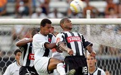 | NETVASCO - 12/10/2005 - 17:52 - VASCO É GARFADO E EMPATA EM CASA COM FIGUEIRENSE: 3 A 3 Com lances polêmicos e muitos erros de arbitragem, Vasco e Figueirense empataram por 3 a 3, na partida remarcada pela 18ª rodada do Campeonato Brasileiro. Repetindo partida anulada pelo escândalo da arbitragem, o juiz Carlos Eugênio Simon e seus auxiliares foram os principais personagens do jogo. Com o resultado, as duas equipes permanecem na zona de rebaixamento, mas com um jogo a menos. Com 33 pontos, o Vasco ocupa a 19ª posição, empatado em pontos com o Atlético-MG, mas com uma vitória a menos. Agora, o time carioca já não vence há seis jogos Já o Figueirense, deixou a lanterna e ocupa o 20º lugar, com 30 pontos. Na próxima rodada, o Vasco viaja até Porto Alegre, onde enfrenta o Internacional, no estádio Beira-Rio, no domingo, às 16h. O Figueirense recebe o Paraná no estádio Orlando Scarpelli, em Florianópolis, no sábado, às 18h10. O JOGO Desde o início da partida, o atacante Edmundo mostrou que ia dar trabalho para a defesa do Vasco. Logo aos 2min, depois da cobrança de escanteio, o goleiro Roberto deixou a bola passar e o jogador do Figueirense acabou cabeceando para fora. O time da casa só assustou aos 11min, quando Morais cruzou rasteiro para Romário e Vinícius cortou pela linha de fundo. Aos 16min, Edmundo, que teve seu nome gritado pela torcida adversária antes do jogo, fez ela se calar. O atacante recebeu a bola dentro da área, driblou Abedi e bateu cruzado no alto, para abrir o placar. Depois do gol, o Vasco melhorou na partida. Com a saída do volante Ygor, machucado, para entrada do meia Fernandinho, o time ficou mais ofensivo e teve boas chances. Aos 23min, Romário lançou Alex Dias, que, livre na área, tentou encobrir o goleiro e mandou por cima do gol. O time carioca seguiu levando perigo e, aos 35min, Fernandinho chutou forte, de longe, e a bola passou com muito perigo, pela linha de fundo. O Vasco até marcou um gol, aos 41min, quando Fernandinho cruzou e Romário bateu cruzado de primeira, mas o auxiliar marcou, erroneamente, impedimento e o gol foi anulado. O técnico do Vasco, Renato Gaúcho, saiu para o intervalo reclamando do seu time: "Temos que acordar. [Os jogadores] estão dormindo em campo". O pedido do treinador foi atendido. Logo aos 4 minutos do segundo tempo, Alex Dias recebeu cruzamento vindo da esquerda na segunda trave, rasteira, e só teve o trabalho de empurrar para dentro da trave de Gustavo. A jogada começou com uma cobrança de falta de Edmundo no campo de ataque. A bola sobrou para a zaga vascaína, que armou o contra-ataque. Fernandinho foi quem cruzou para Alex Dias marcar. Logo depois, aos 18 minutos, Edmundo fez grande jogada na ponta direita, venceu os zagueiros e cruzou rasteiro, cruzado, em direção do gol. Adriano, que tinha acabado de entrar no lugar de Alexandre, dividiu com o zagueiro já dentro da pequena área e conseguiu chutar e marcar. Aos 31 minutos, Fernandinho, que já tinha dado o passe para Alex Dias, invadiu a área pela esquerda e chutou fraco. A bola foi rasteira, passou no meio das mãos de Gustavo, bateu na trave esquerda e entrou. Aos 44 minutos, numa jogada muito polêmica, Márcio Martins, que há pouco entrara no lugar de Michel Bastos, tentou evitar que a bola saísse pela linha de fundo, chutando-a em cima de um zagueiro. Para sorte alvinegra, a bola bateu em Fernandinho e entrou. Houve muita reclamação de que a bola já havia saído quando Martins chutou. Menos de três minutos depois, Bruno Meneguel foi deslocado dentro da pequena área por Adriano, numa disputa para cabecear a bola, e Carlos Eugênio Simon deu pênalti. Romário bateu e selou o empate. GALERIA