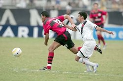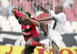 | NETVASCO - 22/10/2005 - 17:52 - VASCÃO VENCE E AFUNDA URUBU NA LAMA: 2 A 1 O Vasco empurrou o Flamengo para o fundo do poço do Campeonato Brasileiro. Neste sábado, o time cruz-maltino aproveitou-se do fator campo para vencer o rival por 2 a 1, em São Januário, e afastar-se da zona do rebaixamento. Júnior Baiano, contra, (o árbitro deu gol para Wagner Diniz) e Romário fizeram os gols do Vasco e Ramírez diminuiu para os rubro-negros. Como já se previa, o clássico, válido pela 33ª rodada, foi pontuado pela tensão, mas esta se resumiu ao comportamento hostil das torcidas. Em campo, os dois times se comportaram bem. No fim, os rubro-negros deixaram a casa do adversário sob insistentes gritos de "segunda divisão". "Ganhou quem foi mais determinado. Subimos mais um degrau", disse Romário. O coro encontra eco da tabela. O Flamengo tem 34 pontos e está parado na zona de rebaixamento. Nos últimos cinco jogos, o time perdeu quatro e venceu apenas um. O fracasso contra o rival deve ter conseqüências graves na Gávea. Nesta tarde, a vitória vascaína iniciou-se em um lance em que Diego e Júnior Baiano falharam grotescamente. "Diego não pegou a bola, ela bateu em mim e entrou", explicou Júnior Baiano. "Saí mal e não tenho como justificar", disse Diego, bastante abatido. Pelo lado vascaíno, muita festa. O time aproveitou a seqüência de dois clássicos em casa, somou seis pontos e chegou aos 39. Os comandados de Renato Gaúcho ganharam uma folga na disputa contra o descenso. Na próxima rodada, o Vasco jogará contra o Santos, novamente em São Januário.O Flamengo viaja a Caxias do Sul para enfrentar o Juventude. O JOGO Debaixo de insistente chuva, o Flamengo começou com mais posse de bola. Aos 4min, Fellype Gabriel teve a chance de marcar, mas Fábio Braz salvou em cima da linha. No contra-ataque, porém, o Vasco abriu o placar com um presente de Júnior Baiano. Wagner Diniz cruzou da direita, Diego errou o soco e o zagueiro colocou, de peito, para o fundo das redes, aos 5min. Na súmula, o árbitro Evandro Roman colocou como se fosse gol do lateral vascaíno. O gol esquisito desestruturou o time flamenguista, que passou a errar muitos passes. Veloz no ataque, os anfitriões tomaram conta da partida, mas as chances de gol cessaram. Em contragolpe aos 25min, aproveitou chute torto de Fellype Gabriel e Ramírez esteve frente a frente com Roberto, mas o goleiro vascaíno defendeu. O Flamengo melhorou e quase empatou aos 30min. André cruzou da esquerda, Diego Souza apareceu por trás da zaga e chutou no travessão. Na gangorra do duelo foi a vez de o Vasco ameaçar aos 34min. Alex Dias cruzou, Romário ajeitou com categoria e Fernandinho chutou. No reflexo, Diego fez a defesa. Logo depois, aos 36min, Fábio Braz cruzou da direita, Romário ajeitou e bateu mascado. Antes de a bola entrar, Augusto Recife ainda desviou. O fim do primeiro foi marcado pelos confrontos entre a torcida flamenguista e a polícia militar. "Nosso time ficou de sacanagem depois do gol. Nosso goleiro quer ouvir coisas da arquibancada e perde concentração. Estamos jogando contra o nosso maior rival e não podemos dar bobeira. Eles não estão mortos", disse Romário, no intervalo. O segundo tempo começou em ritmo lento. Os dois times erraram muitos passes. Enquanto isso, os minutos foram passando e beneficiou o Vasco. Aos 17min, um lance confuso indignou os rubro-negros. Fellype Gabriel chutou cruzado, Roberto espalmou e Amaral puxou Fabiano Oliveira. O árbitro marcou pênalti, mas o auxiliar indicou impedimento do atacante flamenguista. Um minuto depois, Alex Dias quase marcou um golaço. Ele deu um chapéu em Renato Silva e concluiu. A bola passou rente à trave. O Flamengo esquentou o jogo aos 21min. Fellype Gabriel fez jogada individual e chutou fraco. A bola desviou na zaga e sobrou para o paraguaio César Ramírez completar para o gol. Recuado, o Vasco passou a sair em velocidades para o ataque. Aos 32min, Wagner Diniz cruzou da direita e Alex Dias cabeceou para fora. Um minuto depois, Romário rolou na entrada da área para Róbson Luiz chutar com muito perigo. O time cruz-maltino perdeu outras oportunidades aos 35min e 37min. Júnior errou a saída de bola e deixou Alex Dias livre. Arrojado, Diego saiu nos pés do atacante e salvou. Depois, Róbson Luiz cobrou e o goleiro espalmou. O Flamengo só ameaçou aos 39min, quando Jônatas arriscou de primeira e Roberto defendeu em dois tempos. Depois, apesar da pressão, o Vasco segurou o resultado e garantiu a vitória.