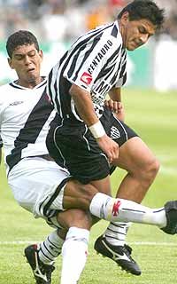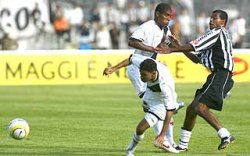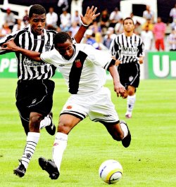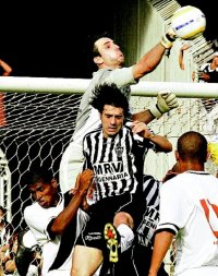 | NETVASCO - 27/11/2005 - 17:52 - Vasco empata com Galo e praticamente dá adeus à Sul-Am.: 0 a 0 O Atlético-MG ficou no 0 a 0 com o Vasco, neste domingo e deu adeus ao sonho de permanecer na Primeira Divisão. Com este empate e com os outros resultados da rodada, o time mineiro acabou rebaixado na penúltima rodada do Campeonato Brasileiro. Os cariocas também não têm mais chances de conseguir seu objetivo de chegar à Sul-Americana. Sem conseguir os três pontos nesta partida, o time mineiro não tem mais chances de sair da zona de rebaixamento. Com 44 pontos, no 20° lugar, a equipe não pode mais alcançar São Caetano, que, com 49 pontos, ocupa a primeira posição fora da área da degola. No final da partida, demonstrando amor pelo clube e reconhecimento ao esforço dos jogadores, a torcida atleticana promoveu um momento inusitado e emocionante. Apesar da equipe ter sido rebaixada, os torcedores aplautiram o time de pé e cantaram o hino do Atlético-MG. Já o Vasco, com 53 pontos, na 14ª posição, está fora da disputa por uma vaga na Copa Sul-Americana. O Fortaleza, 11° colocado e último classificado, tem 56 pontos, mas duas vitórias a mais (primeiro critério de desempate) que a equipe crumaltina. Apesar do domínio atleticano durante todo o jogo, o time de São Januário teve a chance mais clara de vencer a partida. Aos 16min do segundo tempo, Romário, vice-artilheiro do campeonato, desperdiçou uma cobrança de pênalti. O goleiro Bruno defendeu. No próximo domingo, dia 4 de dezembro, todas as equipes entrarão em campo para a rodada decisiva do Brasileirão, às 16h. O Atlético-MG viaja até Caxias do Sul, onde enfrenta o Juventude, enquanto o Vasco recebe o Paraná, em São Januário. O JOGO O Atlético-MG começou melhor a partida, indo para o ataque, enquanto o Vasco se preocupava em cadenciar o ritmo. Porém, pecando nas finalizações, o time mineiro demorou a levar perigo ao gol adversário. Os erros na finalização atrapalharam a equipe mandante, que chegava mais no ataque. Aos 14min, Pablito recebeu cruzamento, mas errou na conclusão. Aos 18min, com muita liberdade, o atacante voltou a ter uma chance, mas chute fraco da entrada da área. A pressão mineira seguiu forte, dando trabalho para Roberto. Aos 23min, Rubens Cardoso chutou forte e o goleiro fez boa defesa. Dois minutos depois, Pablito arriscou de fora da área e a bola passou perto do gol. No final do primeiro tempo, o Vasco cresceu na partida e passou a equilibrar o jogo. Porém, somente aos 39min os visitantes levaram perigo ao gol adversário. Depois da tabela, Robson Luiz chutou para a defesa de Bruno. Precisando vencer para não ser rebaixado, o Atlético-MG voltou com tudo do intervalo. Logo no primeiro minuto o time da casa balançou a rede adversária. Porém, como o chute desviou em um jogador impedido, o gol foi anulado. Aos 4min, Pablito chutou no ângulo e Roberto fez grande defesa. Aos 16min, Romário perdeu a chance de abrir o placar para o time carioca e também de chegar à artilharia da competição. O lateral Wagner Diniz caiu depois de dividida com Lima e o árbitro marcou pênalti. Na cobrança, o atacante chutou e Bruno defendeu. Desesperado, o Atlético-MG partia para o ataque de qualquer maneira e as duas equipes se revesavam nas chances. Aos 20min, Roberto saiu mal do gol, mas Renato tocou para fora. GALERIA