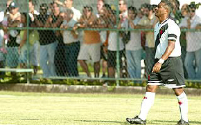 | NETVASCO - 10/01/2006 - 18:44 - Vasco vence amistoso em tarde de Alex Dias e Abedi: 6 a 0 O amistoso contra o Duque de Caxias, time da segunda divisão do Campeonato Carioca, não foi como Romário esperava. O Baixinho teve apenas uma chance nos 90 minutos e só balançou a rede graças a ajuda do goleiro Léo, que falhou em um lance fácil. Com isso, o atacante chegou a 942 gols na carreira faltando, em suas contas, 58 para o sonhado gol 1000. No final, o Vasco venceu por 6 a 0, nesta terça-feira, no Vasco-Barra, no primeiro amistoso marcado pelo clube com o objetivo de ajudar o Romário a chegar perto do milésimo gol. O Vasco começou em ritmo lento. O time não conseguia criar oportunidades. Romário mal tocava na bola. Na primeira chance veio o gol. Aos 24 minutos, Wágner Diniz cruzou para Alex Dias, que chutou no canto do goleiro. Logo em seguida, Fábio Baiano acertou um chute na trave. Aos 36 minutos, Romário tocou para Alex Dias, que driblou Rodrigo e tocou na saída do goleiro: 2 a 0 Vasco. O primeiro tempo terminou sem o goleiro Roberto fazer uma defesa. No segundo tempo, o Vasco começou novamente com dificuldades para armar jogadas. Com 15 minutos, Renato Gaúcho trocou completamente o Vasco. Exceção, lógico, para Romário. O único titular que permaneceu em campo. Entraram Cássio, Claudemir, Bebeto, Jorge Luiz e Thyago; Alberoni, Ernani, Osmar, Abedi e William. Aos 26 minutos, Romário continuava sem chutar a gol. Aí, o goleiro Léo recebeu uma bola recuada. Em vez de chutar para frente, tentou dominar. Romário pegou a bola e tocou para o gol vazio sem dificuldade. Aos 30 minutos, Jorge Luiz sofreu pênalti. Romário deixou Abedi cobrar, que marcou o quarto gol vascaíno. Aos 40 minutos, Romário recebeu passe de William, dominou no peito e chutou. A bola bateu na trave. Logo depois, Ernane acertou um belo chute no ângulo e fez o quinto. Aos 48, Abedi encerrou a goleada. GALERIA