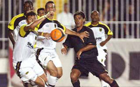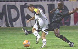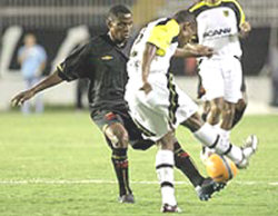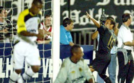 | NETVASCO - 18/01/2006 - 23:42 - Vasco vence Volta Redonda em São Januário: 2 a 1 Mesmo sofrendo pressão durante boa parte do segundo tempo e sem apresentar um grande futebol, o Vasco conseguiu sua segunda vitória no Estadual do Rio e permanece com 100% de aproveitamento na competição. O time derrotou o Volta Redonda por 2 a 1, em São Januário. Com o resultado, o time chegou ao mesmo número de pontos do Botafogo, líder do Grupo B. Entretanto, a equipe cruzmaltina perde no saldo de gol (três para os vascaínos contra quatro para os botafoguenses) e ocupa a vice-liderança. Apesar da polêmica criada na terça-feira, quando entrou com uma ação contra o Vasco, pedindo seus direitos federativos, o atacante Alex Dias entrou em campo. Apesar da disposição e de alguns bons lances, o jogador não escapou das vaias da torcida e de ser chamado de mercenário. Completando seu 100° jogo com a camisa vascaína, Morais marcou mais uma vez, como já tinha feito na estréia do time. Coincidentemente, a marca importante do jogador de 21 anos, foi feita com a camisa número três da equipe, toda preta, sem a tradicional listra diagonal no peito. O Volta Redonda, que havia vencido na primeira rodada, ocupa o terceiro lugar, com três pontos. Em quarto, também com uma vitória está o Friburguense, que, no entanto, tem saldo de gols negativo (-2), enquanto a equipe da Cidade do Aço tem saldo zero. Na próxima rodada, o Vasco disputará o clássico contra o Botafogo na reabertura do Maracanã. A partida acontece no domingo, às 18h10. No mesmo dia, às 16h, o Volta Redonda recebe o Friburguense no estádio Raulino de Oliveira. O JOGO Do lado do Vasco o ataque era liderado por Romário, artilheiro do último Brasileirão. No outro campo, Túlio, goleador máximo do último Estadual do Rio era a esperança do Volta Redonda. Porém, de parte a parte, o que se viu no primeiro tempo foi falta de inspiração ofensiva, apesar do placar parcial, no intervalo. O time do interior levou perigo apenas em chutes de longe. Logo no primeiro minuto, Túlio tentou encobrir Roberto, mas mandou por cima do gol. Aos 5min, o atacante conseguiu um gol, mas seu impedimento já era marcado. O Vasco criou poucas oportunidades, mas o time soube aproveitar as chances que teve. Aos 25min, Morais cobrou escanteio e, livre, no meio da pequena área, Éder apenas escorou de pé direito para abrir o placar. Sem conseguir entrar na defesa vascaína, o Volta Redonda seguiu insistindo em chutes de longa distância, especialmente com Sergio Manoel. Porém, nos dois chutes do experiente meia mandou uma bola para fora e a outra foi defendida com tranqüilidade. Errando muitas jogadas, Wagner Diniz recebeu algumas broncas do técnico Renato Gaúcho. Os gritos surtiram efeito e, aos 41min, o lateral fez a jogada de linha de fundo pela direita e tocou para trás, para Morais, que, de primeira, ampliou para o Vasco. "Quando ele [Renato] fala é sempre para motivar. Graças a Deus conseguimos fazer a jogada no final e fizemos o gol", disse o lateral Wagner Diniz sobre as broncas do técnico Renato Gaúcho. "Vamos conversar no intervalo para, no segundo tempo, ampliar esse placar", completou o ala. A segunda etapa foi totalmente diferente da primeira. Logo aos 4min, Sergio Manoel, um dos jogadores mais acionados da equipe no primeiro tempo, cobrou falta com perfeição no ângulo e o goleiro Roberto nem se mexeu, diminuindo para o time da Cidade do Aço. O Volta Redonda passou a dominar o jogo, mas o Vasco levava perigo nos contra-ataques. Vaiado pela torcida por causa de uma ação movida contra o clube, Alex Dias passou a se destacar. Aos 11min, o atacante cruzou, a defesa afastou mal e Romário cabeceou para fora. Aos 16min, Morais lançou, o zagueiro falhou e a bola sobrou para Alex, que chutou em cima de Adriano. Melhor em campo, a equipe do interior passou a dar muito trabalho para Roberto. Aos 20min, Túlio bateu forte e o goleiro espalmou. Aos 24min, Alexandre Gaúcho cruzou para Aílson, que cabeceou para grande defesa do camisa 1 cruzmaltino. No final do jogo, o goleiro vascaíno ainda teve mais trabalho. Aos 45min, Túlio arriscou de longe e Roberto ficou com a bola. Aos 47min, Preto girou na entrada da e o goleiro fez mais uma defesa. GALERIA