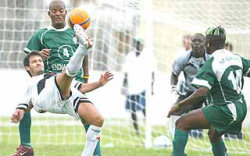 | NETVASCO - 30/01/2006 - 19:18 - Romário faz um e Vasco goleia Sagrada Esperança-ANG: 4 a 0 Romário marcou um gol e o Vasco venceu o Sagrada Esperança por 4 a 0, nesta segunda-feira (30/01), em São Januário. O jogo foi mais um amistoso marcado para ajudar o Baixinho a completar o milésimo gol. Na contagem regressiva o atacante tem 947 gols e faltariam 53 para a marca histórica. No primeiro tempo, o Vasco finalizou 23 vezes ao gol do Sagrada Esperança. Já o goleiro Roberto tocou apenas quatro vezes na bola. Os gols foram aparecendo com naturalidade: aos quatro minutos, com Rafael, num chute de dentro da área; aos 20 minutos, com Ramon, em bela cobrança de falta; aos 28, novamente com Rafael, de cabeça, numa falha do goleiro Senta. O gol de Romário demorou a sair. Só veio aos 34 minutos, na segunda finalização do atacante a gol. Chute rasteiro na saída do goleiro após passe de Rafael: 4 a 0. No segundo tempo, o técnico Renato Gaúcho substituiu oito jogadores. O time diminuiu de ritmo e encontrou mais dificuldades de chegar ao gol do Sagrada Esperança. Romário jogou mais recuado tentando armar o time e ainda desperdiçou aos 27 minutos um pênalti, sofrido por Bruno Meneghel, ao cobrar fraco no meio do gol para a defesa do goleiro Senta. GALERIA