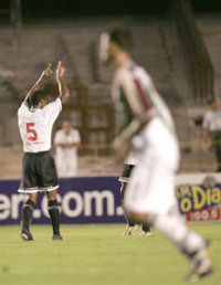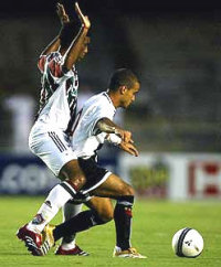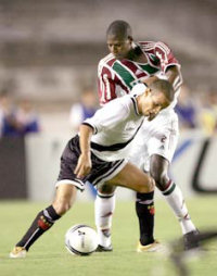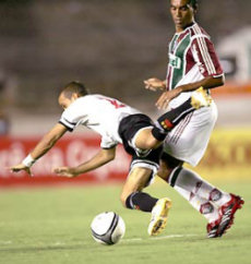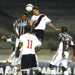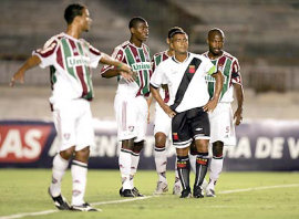 | NETVASCO - 05/03/2006 - 20:05 - Vasco cede empate ao Fluminense no fim: 2 a 2 Não era o resultado que Fluminense e Vasco esperavam. Para entrar na zona de classificação para as semifinais da Taça Rio, o Flu precisava de uma vitória. Mas o empate por 2 a 2 com o Vasco, conquistado no fim de um jogo em que atuou quase sempre pior que o adversário, até que animou a torcida. Em termos de classificação, o resultado foi muito ruim para o time das Laranjeiras, que passou a somar quatro pontos e desperdiçou a chance de ultrapassar o Flamengo, que um pouco mais cedo empatou com o América. O Flu segue sem depender de si e, para se classificar, precisa vencer seus dois jogos, além de torcer contra os adversários. "Todo mundo está de parabéns. O resultado não foi alcançado, mas foi melhor que a derrota. Estava há um tempo fora do país e tive a felicidade de marcar dois gols. Mesmo cansado, consegui comemorar", festejou Jean, o artilheiro da noite. Para o Vasco, assim como o técnico Renato Gaúcho havia anunciado antes do clássico, o empate não foi tão ruim, já que o time tem um jogo a menos. A partida contra a Cabofriense foi adiada devido ao carnaval na cidade da Região dos Lagos e será realizada no dia 15 deste mês, após a quinta rodada. Após o jogo, o técnico Renato Gaúcho teve que se explicar porque, durante o segundo tempo, tirou o atacante Romário, sem que o Baixinho tivesse pedido para sair. O assunto irritou o treinador, que explicou suas motivações. "Ninguém gosta de sair, nem o Romário. Infelizmente alguém tinha que sair. O Fluminense começou a tomar conta do jogo, o nosso meio-campo recuou e precisávamos sair no contra-ataque com velocidade", disse Renato Gaúcho. A reação das duas torcidas a cada substituição serve como termômetro do jogo. O empate não agradou a nenhuma das torcidas, que xingaram seus técnicos de "burro". "Eu não ouvi. Sinceramente não escutei. Mas o torcedor tem todo direito de gritar o que quiser", disse o treinador do Vasco. "A insatisfação da torcida é normal no futebol", completou Paulo Campos, do Fluminense, que foi xingado quando tirou Lenny de campo. Para tentar esquecer campanha ruim no Estadual, o Fluminense terá um compromisso pela Copa do Brasil no meio de semana. Na quinta-feira, às 20h30, o time enfrenta o Operário-MT, pelo jogo de volta da primeira fase. Em Cuiabá, o Flu venceu por 3 a 2 e, para ficar com a vaga, pode até perder por um gol de diferença. Já o Vasco, que eliminou o Botafogo-PB e enfrentará o Iraty-PR na segunda fase da Copa do Brasil, terá a semana inteira para treinar e se preparar com calma para a próxima partida do Estadual. No domingo que vem, a equipe enfrentará o Americano, às 16h, em São Januário. O JOGO Mais organizado, o Vasco começou a partida envolvente. Bastante acionado, o atacante Valdiram deu trabalho à defesa do Fluminense nos primeiros minutos. Aos 16min, ele recebeu na direita, balançou na frente de Marcão e chutou forte. Atento, Fernando Henrique fechou o ângulo e fez boa defesa com as pernas. O Vasco continuou pressionando, mas as chances pararam nas mãos do goleiro do Flu ou mesmo na forte marcação adversário. A melhor chance do Fluminense na primeira etapa aconteceu aos 28min. Cláudio Pitbull recebeu lançamento longo de Thiago Silva, invadiu a área pela direita e ficou cara a cara com Roberto. Mas o chute saiu em cima do goleiro, que comemorou muito a boa defesa. Apesar desse susto, prevaleceu o melhor futebol do time de Renato Gaúcho, que abriu o placar aos 33min. Romário sofreu falta de Anderson e ele mesmo cobrou, com força. A bola bateu na barreira e sobrou limpa para Ygor, que, diante apenas de Fernando Henrique, não teve trabalho para fazer o gol. No fim da primeira etapa, o Fluminense teve uma boa chance, com Lenny, mas o chute saiu fraco. Em seguida, Cláudio Pitbull chutou falta perigosa na barreira e saiu para o intervalo reclamando da má sorte do time. "Criamos algumas situações, tivemos chances. Vamos trabalhar a bola para virar o jogo no segundo tempo", disse o atacante. Para Ygor, o Vasco fez o gol no momento certo. "Começamos bem, pressionando e marcando o time deles em cima. Depois caímos um pouco, saiu o gol e conseguimos dar uma tranqüilizada", disse. Para a segunda etapa, o técnico Paulo Campos colocou Tuta no lugar de Rissut, que foi muito mal nos primeiros 45 minutos. Com essa alteração, o Fluminense passou a jogar com três atacantes e Romeu foi deslocado para a lateral-direita. Na primeira jogada do segundo tempo, um lance polêmico. Jorge Luiz falhou e Cláudio Pitbull tomou a frente do zagueiro do Vasco, que agarrou o adversário no limite da grande área. O árbitro marcou falta, que o próprio atacante chutou na barreira. Mas bastou o Vasco tocar a bola e a defesa do Fluminense se abrir para que o segundo gol vascaíno saísse. Aos 3min, Claudemir recebeu ótimo passe de Morais e, sozinho na entrada da área, chutou de canhota no alto. Fernando Henrique se esticou, mas a bola foi fora do seu alcance. O Fluminense não se entregou e partiu para cima do adversário. Aos 11min, Romeu brigou para ganhar uma bola perdida e cruzou para Lenny, que acertou o travessão. Em seguida, aos 16min, saiu o gol do Flu. Pedrinho rolou para Jean, que, de fora da área, acertou o canto esquerdo de Roberto, marcando um belo gol. O próprio Jean se tornaria, mais tarde, o autor do segundo gol do Flu. Aos 42min, em cobrança de falta de longa distância, Jean acertou o canto e marcou um belo gol, garantindo o empate no clássico. GALERIA