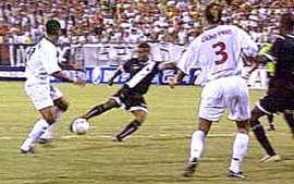 | NETVASCO - 15/03/2006 - 22:20 - Vasco perde para a Cabofriense e se complica: 2 a 0 Ficando em situação complicada na Taça Rio, o Vasco perdeu por 2 a 0 para a Cabofriense em partida adiada da segunda rodada. Com isso, agora o time cruzmaltino não depende apenas de si para chegar às semifinais do Estadual do Rio. Com a derrota, o Vasco continuou na penúltima posição do Grupo B e depende de outros três resultados na última rodada para se classificar, além de precisar vencer o seu jogo. No primeiro turno, o time não disputou as semifinais. Já a Cabofriense assumiu a liderança do Grupo A, tirando o Flamengo da zona de classificação. Com oito pontos, a equipe está empatada em pontos com o Americano, mas leva vantagem no saldo de gols (3 contra 1). Além de ter sido ruim para o Vasco, o resultado também atrapalhou os dois outros times grandes que ainda estão na briga para ir às semifinais. Com a vitória da Cabofriense, Flamengo e Fluminense, ambos do Grupo A, tiveram sua tarefa dificultada. A próxima rodada, a última da Taça Rio, será toda disputada no domingo. O Vasco terá pela frente um clássico contra o arqui-rival Flamengo, no Maracanã, às 16h. No mesmo horário, a Cabofriense recebe o Madureira, no Correão. O JOGO As duas equipes começaram a partida buscando o ataque. Dando menos espaço, porém, o time da casa era melhor e não deixava o Vasco levar perigo ao seu gol. A Cabofriense chegou pela primeira vez aos 8min, quando Hugo chutou e Roberto espalmou para frente, mas conseguiu se recuperar, dando um tapa para escanteio antes da chegada de João Vitor. Não demorou para a equipe de Cabo Frio chegar ao seu gol. Aos 9min, depois de cruzamento da direita de Daniel, Sorato subiu livre na pequena área e cabeceou para abrir o placar. O primeiro lance em que o goleiro da Cabofriense teve realmente trabalho aconteceu somente aos 22min. Romário pegou a sobra e bateu de primeira da entrada da área para a boa defesa de Flávio. Aos 29min, Edílson cruzou na segunda trave para a cabeçada do Baixinho, mas o goleiro defendeu em dois tempos. Os dois times passaram a alternar chances. Aos 38min, Sorato recebeu com liberdade, bateu forte e Cássio fez grande defesa. Aos 40min, Romário matou no peito e chutou de fora da área, mas Flávio ficou com a bola sem problemas. "Jogando em casa, eles saíram na frente e aí fica fácil para destruir as nossas jogadas. Tivemos alguns bons momentos, mas erramos muito. Vamos acertar para voltar melhor no segundo tempo", disse Edílson no intervalo. Na volta para a segunda etapa, a Cabofriense continuou melhor e tentou ampliar logo no início. Aos 3min, Hugo deixou dois zagueiros para trás e, cara a cara com Cássio, bateu para a grande defesa do goleiro. Aos 7min, Cléberson subiu mais que a defesa após cobrança de falta e Cássio mais uma vez salvou o time depois da cabeçada. O Vasco cresceu no jogo e passou a ter mais a posse da bola. Entretanto, os cruzmaltinos não conseguiam criar jogadas de perigo e erravam muitos passes, sem levar perigo ao gol do time da casa. Atuando com mais qualidade, a Cabofriense acabou conseguindo ampliar. Anderson arriscou um chute forte de longe e Cássio espalmou para frente. No rebote, Sorato pegou a bola livre e bateu com força, fazendo seu segundo gol na partida. GALERIA