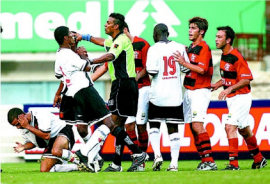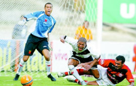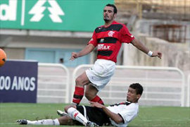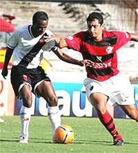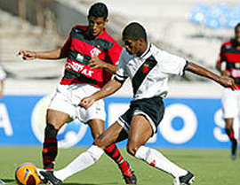 | NETVASCO - 19/03/2006 - 18:05 - VASCO VENCE URUBU E AMBOS DÃO ADEUS AO ESTADUAL: 2 a 1 Aconteceu o previsível no Maracanã. O Vasco venceu o Flamengo por 2 a 1 neste domingo, mas como os dois dependiam de resultados de terceiros, acabaram melancolicamente eliminados do Campeonato Estadual. O jogo terminou com uma pancadaria generalizada entre os jogadores do Flamengo, do Vasco e, posteriormente, a Polícia Militar. A equipe de São Januário dependia de tropeços de Madureira, América, Friburguense e Volta Redonda, mas os quatro não facilitaram e por isso, mesmo vencendo, o Vasco ficou na quinta posição. Já o Flamengo terminou na quarta colocação da chave A, com seis pontos. O fiasco no Estadual deve sacudir a Gávea. A diretoria apostava na conquista do torneio para apagar o péssimo ano de 2005. Mas, em vez de melhorar, a equipe regrediu ainda mais e na classificação geral terminou na 11ª posição entre 12 clubes. Nem a demissão de Valdir Espinosa, no meio da Taça Rio, melhorou a situação e a entrada de Waldemar Lemos mostrou-se ineficaz. Neste domingo, a torcida do Flamengo o chamou de "burro" insistentemente. Para o time, outra classificação nada agradável: "sem vergonha", foram o que os jogadores ouviram nos minutos finais da partida. Já no Vasco, a vitória deve manter Renato Gaúcho no cargo. Ele chegou a colocar o cargo à disposição após a derrota para a Cabofriense, na quarta-feira, mas a diretoria resolveu mantê-lo. A recuperação contra o maior rival deve dar sobrevida. Irritada com Romário, a torcida do Vasco saudou o ex-jogador Edmundo, atualmente no Palmeiras. No Flamengo tem uma válvula de escape contra a crise. Na manhã desta segunda, o time viaja para o Rio Grande do Norte, onde, na quarta, enfrenta o ABC-RN. Deste modo, escapará da fúria da torcida. A eliminação da dupla evidencia a nova tendência do futebol do Rio de Janeiro. Nos últimos dez anos, ou Flamengo ou Vasco haviam participado de oito finais e os dois decidiram o título em cinco ocasiões. Mas tanto em 2005 e 2006, houve eliminação precoce e os "ex-reis" do Rio assistem à tomada de poder dos outros. O JOGO Mais focado no clássico e com a torcida em número bastante superior, o Flamengo começou assustando. Aos 5min, Leonardo Moura cruzou da direita, Ramírez ganhou de Jorge Luiz na cabeça e a bola tocou na trave esquerda antes de sair. O Vasco equilibrou o jogo e passou a explorar os passes errados da defesa rival. Juan, Felipe Dias e Renato Silva se revezaram na tarefa de entregar a saída de bola. Aos 25min, Valdiram deu um chapéu em Diego Souza e chutou para excelente defesa de Diego. Um minuto depois, Cássio saiu mal do gol e soltou a bola nos pés de Diego Souza, que chutou por cima do travessão. Com a lateral esquerda do Flamengo transformando-se em uma avenida, o Vasco aproveitou. Edílson entrou no vão e rolou para Claudemir isolar. Impaciente, a torcida rubro-negra pediu "raça" aos 34min e o time respondeu. Juan cruzou da esquerda, Luizão ajeitou e Ramírez concluiu prensado e a bola acabou nas mãos de Cássio. As duas equipes continuaram com um festival de lances grotescos e a torcida do Flamengo começou a perseguir alguns jogadores. Juan e Diego Souza foram os primeiros escolhidos. A revolta aumentou quando a zaga permitiu a entrada de Ygor, livre, para marcar o primeiro gol do Vasco, aos 43min. Um minuto depois, Renato bateu falta forte e Cássio mandou para escanteio. Em outra falta, aos 46min, o Flamengo empatou. Diego Souza cobrou rasteiro, a barreira pulou e Cássio não alcançou. O que era insatisfação na torcida do Fla, tornou-se euforia, principalmente porque simultaneamente o Americano perdia para Friburguense. Mas aos 6min, Morais marcou um golaço para o Vasco. O meia driblou Jônatas, Felipe Dias, Leonardo Moura, Renato Silva e por último aproveitou-se da má colocação de Diego para marcar. Mal postado em campo, o Flamengo virou presa fácil para os contra-ataques. Aos 9min, Edílson chutou e Diego defendeu. Depois, novamente Edílson entrou frente a frente com o goleiro adversário, mas o preciosismo o impediu de fazer o gol. Aos 11min, Valdiram foi derrubado dentro da área, mas o árbitro entendeu que houve simulação e deu amarelo para o atacante vascaíno. O Flamengo teve um espasmo de reação aos 11min, quando Renato chutou forte e Cássio espalmou. O Vasco teve novamente a chance aos 13min, quando Ramon driblou Ronaldo Angelim com facilidade e bateu por cima. Posteriormente, no desespero, o Flamengo continuou errando passes bisonhos e dando contragolpes ao adversário, que insistiu em não aproveitá-los. No fim, os jogadores protagonizaram cenas de pugilato e Diego Souza e Morais foram expulsos. Após o encerramento da partida, Renato tentou agredir o árbitro Edílson Soares e a Polícia Militar envolveu-se em uma grande pancadaria com os flamenguistas. "Não tem nenhum bandido aqui", esbravejou o goleiro Diego, que recebeu gás de pimenta. GALERIA