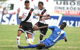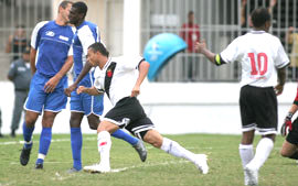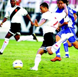 | NETVASCO - 08/04/2006 - 17:54 - Vasco goleia Iraty com show de Valdiram e se classifica: 5 a 1 Enquanto Romário curtia seu primeiro sábado em Miami Beach, sua nova praia, o Vasco disputava seu primeiro jogo após a saída do atacante para o futebol americano. Sem o Baixinho, Edílson marcou seu primeiro gol pelo clube, mas foi Valdiram quem brilhou com três gols e ajudou o time a virar o jogo contra o Iraty-PR para 5 a 1, nesta tarde, em São Januário. O resultado colocou a equipe nas oitavas-de-final da Copa do Brasil. André deu um susto na torcida vascaína e abriu o placar para Iraty-PR, mas Morais empatou antes de Valdiram brilhar com os três gols que o deixaram na artilharia isolada da Copa do Brasil, com seis. Como o placar do primeiro jogo da segunda fase, no Paraná, foi de 2 a 2, o Vasco garantiu a classificação para enfrentar o Criciúma. "Com muito esforço, fiz o meu trabalho. Marquei três gols, mas o mais importante é que eu pude ajudar a equipe do Vasco a se classificar", disse Valdiram. A primeira partida das oitavas-de-final será na próxima quarta, em local a ser definido. Para esta partida, o Vasco não poderá contar com o zagueiro Jorge Luiz, que recebeu seu terceiro cartão amarelo na competição neste sábado. O vencedor do confronto entre Vasco e Criciúma vai enfrentar o classificado de XV de Novembro-RS x Volta Redonda. Com a classificação, o Vasco também exorcizou um fantasma que lhe atormentou nos últimos dois anos. Em 2004, o time foi eliminado pelo XV de Novembro-RS e no ano passado pelo Baraúnas-RN, ambas as vezes em São Januário. Apesar do susto, a classificação do Vasco para as oitavas-de-final da Copa do Brasil amenizou o ambiente no clube. Após uma participação desastrosa no Campeonato Estadual, no qual o time não conseguiu avançar para as fases decisivas do primeiro nem do segundo turno, a diretoria aumentou a pressão ao deixar claro que o torneio nacional passou a ser prioridade. Uma eliminação diante do Iraty-PR certamente detonaria uma crise no clube às vésperas da estréia do time no Campeonato Brasileiro, no próximo sábado, contra o Internacional, em São Januário. Mas o Vasco cumpriu bem o seu papel e evitou problemas na seqüência da temporada. O JOGO O Iraty-PR deu o primeiro susto num contra-ataque, logo aos 2 min. André arrancou pela meia-direita, invadiu a grande área, mas bateu mal. Desequilibrado por se jogar, na tentativa de cavar um pênalti, o meia chutou para fora, à esquerda de Cássio. Depois, o jogo ficou sonolento. Com muitos passes errados e chutões para frente, poucos lances de perigo foram criados. Mesmo assim, o Vasco teve uma boa chance aos 19min. Morais dominou na entrada da área, de frente para o gol, sem ninguém na sua frente, mas chutou nas mãos do goleiro. Até que aos 21min, o Iraty-PR abriu o placar graças a uma falha grotesca de Edílson. O atacante pisou na bola no meio-de-campo e permitiu o contra-ataque do adversário. Renaldo cruzou da direita para a grande área e André, livre de marcação na marca do pênalti, cabeceou no canto direito de Cássio. O Vasco começou a reagir aos 28min. Wagner Diniz avançou pela direita, deu um drible desconcertante num adversário e cruzou para a grande área. Valdiram subiu e não alcançou, mas a bola sobrou para Ramon, que cabeceou para o chão, mas o goleiro salvou no susto, espalmando para escanteio. Na cobrança, aos 29min, o Vasco empatou. Morais dominou pela direita e chutou cruzado. A bola desviou na zaga do Iraty-PR, enganou o goleiro, que caía para o canto direito, e entrou no canto esquerdo. O Vasco tentou pressionar, mas só chegou com perigo no final do primeiro tempo. Aos 46min, Wagner Diniz avançou pela direita, passou por Márcio Diniz e chutou da entrada da área, mas a bola foi para fora. No segundo tempo, o Iraty-PR voltou com um uniforme diferente, sem o escudo do clube, e levou a virada. Aos 9min, Valdiram recebeu passe de Morais na direita, driblou Edson Borges na grande área, trouxe para o meio e chutou na saída do goleiro para marcar o segundo do Vasco. O time da casa se animou a chegou ao terceiro, aos 29min. Wagner Diniz recebeu pela direita e tocou no meio para Edílson, que deu um passe de calcanhar para Valdiram. O atacante dominou dentro da grande área, pela esquerda, e chutou cruzado, colocando no canto esquerdo do goleiro. Empolgado, Valdiram marcou seu terceiro gol aos 37min. Em mais um passe de Morais, o atacante dominou na grande área, pela esquerda, e chutou no ângulo direito do goleiro. Aos 47min, Edílsom marcou seu primeiro gol pelo Vasco e comemorou muito. GALERIA