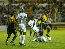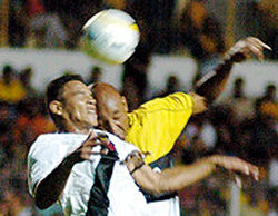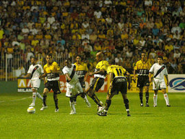 | NETVASCO - 12/04/2006 - 23:45 - É O TIME DA VIRADA! CRICIÚMA 1 X 2 VASCÃO! O Vasco melhorou seu desempenho na Copa do Brasil. Nesta quarta-feira à noite, em Criciúma, o time carioca venceu sua primeira partida fora de casa na competição: 2 a 1 no Criciúma, de virada, pelo jogo de ida das oitavas-de-final da competição. Nas duas primeiras fases, a equipe vascaína havia empatado com Botafogo-PB e Iraty-PR no jogo de ida, também fora de casa, goleando em São Januário na volta. Desta vez, porém, o Vasco foi melhor. Com o resultado positivo nesta quarta, o time carioca pode até perder o jogo de volta, dia 20, em São Januário, por 1 a 0, que ainda assim garantirá sua vaga nas quartas-de-final do torneio nacional. Além disso, ao contrário do que aconteceu contra o Iraty-PR, quando empatou fora por 2 a 2 tendo dois jogadores a mais em campo durante quase todo o segundo tempo, desta vez foi a equipe vascaína que sofreu com o cartão vermelho. No final do primeiro tempo, Edílson deu uma cotovelada no zagueiro Rodrigo, do Criciúma, e acabou expulso de campo. Mas, mesmo com um jogador a menos, o Vasco soube se fechar e contra-atacar com eficiência. Ernani garantiu a vitória vascaína no final do jogo. Alex Sandro e Ramon haviam marcado no primeiro tempo. Nesta quarta, o Vasco foi quem sofreu com o cartão vermelho. No final do primeiro tempo, Edílson acertou uma cotovelada no zagueiro Rodrigo e foi expulso. Com isso, a equipe carioca atuou todo o segundo tempo com um jogador a menos em campo. O JOGO Com espaços na zaga do Criciúma, o Vasco criou a primeira boa chance do jogo. Valdiran recebeu lançamento livre, mas adiantou muito a bola. Quando finalizou, o goleiro Fabiano saiu bem do gol e fez a defesa. Quando respondeu, o Criciúma conseguiu abrir o placar. Fernandinho tentou o cruzamento para a área. A bola bateu na zaga vascaína e sobrou para Alex Sandro. O meia bateu de primeira, com força, e marcou belo gol. Apesar do gol, o Criciúma continuou aberto em sua defesa. E acabou pagando por isso aos 21min. Ramon recebeu lançamento nas costas da zaga tricolor e marcou o gol de empate na saída do goleiro Fabiano. Pouco depois, Delmer chegou a marcar mais um para o Criciúma, mas o gol foi anulado pela arbitragem. A partida só voltou a esquentar aos 37min, quando Edílson acertou uma cotovelada em Rodrigo, na área do Criciúma, e foi expulso. Com um jogador a mais em campo, o Criciúma voltou para o segundo tempo com o atacante Negreiros no lugar do zagueiro Rodrigo. No entanto, a primeira chance foi do Vasco. Ramon, aos 2min, exigiu boa defesa do goleiro Fabiano. A partir daí, a equipe catarinense passou a dominar o jogo. Logo aos 3min Negreiros fez jogada individual, mas também parou em defesa firme de Cássio. Cinco minutos depois, Marcelo Rosa tentou o chute de longe, mas mando por cima de Cássio. A equipe catarinense continuou dominando o jogo, mas sofrendo com os contra-ataques rápidos vascaínos, puxados por Valdiran. Chance clara de gol, porém, só voltou a acontecer aos 21min. Marcelo Rosa tocou para o gol, mas Cássio defendeu. Com forte marcação, o Vasco permitiu mais posse de bola do Criciúma, mas seguiu evitando a pressão próxima à sua área. Apenas aos 30min, em cobrança de falta de Luizinho Neto, os donos da casa assustaram, em chute que passou perto. Sem organização, o Criciúma não conseguiu seguir pressionado. E acabou levando a virada. Aos 42min, Abedi puxou contra-ataque e lançou Ernani. O meia bateu no canto direito de Fabiano e virou o placar. GAlERIA