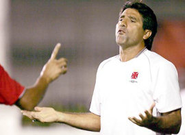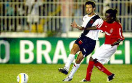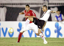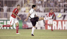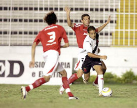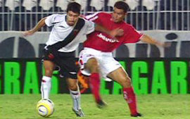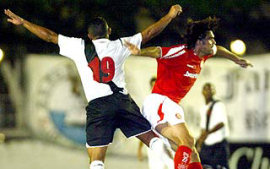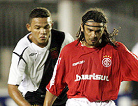| NETVASCO - 15/04/2006 - 20:23 - Vasco empata com o Inter na estréia no Brasileirão: 1 a 1 Atual vice-campeão brasileiro, o Internacional caminhava para uma estréia vitoriosa no Campeonato Brasileiro. Mas duas substituições feitas pelo técnico Renato Gaúcho garantiram o empate por 1 a 1 para o Vasco, em São Januário. Melhor em campo durante boa parte do segundo tempo, os gaúchos marcaram primeiro, com Adriano, e desperdiçaram outras chances. Mas a dupla Faioli e Abedi, que saiu do banco de reservas, mudou o panorama do jogo e o equilibrou ao ponto de conseguir a igualdade. Apesar da reação, o time vascaíno lamentou a perda de dois pontos dentro de casa. "Às vezes, os atacantes precisam entender que gol de bico também vale", disse o técnico Renato Gaúcho. Em baixa após a perda do título Gaúcho para o Grêmio, o técnico Abel Braga não esteve em boa jornada. O treinador substituiu os até então "intocáveis" Tinga e Fernandão e assistiu passivamente à mudança tática vascaína. Agora, ambos se voltam para outras competições durante esta semana. O Vasco decide a classificação para as quartas-de-final da Copa do Brasil, em casa, contra o Criciúma, quarta-feira. Já o Inter, praticamente classificado, enfrenta o União Maracaibo-VEN, pela última rodada da fase de grupos da Libertadores. O jogo acontece terça, no Beira-Rio. No Brasileiro, o próximo compromisso será domingo, dia 23. Os gaúchos recebem o Santa Cruz e o Vasco viaja até Campinas para enfrentar a Ponte Preta. O JOGO Os visitantes começaram bem, trocando passes no campo de ataque, mas sem finalizar. Antes dos 10min, a torcida vascaína dava sinais de irritação com o domínio rival. Mas, aos 11min, Edílson recebeu de Morais e chutou com perigo. Foi o bastante para o panorama se modificar. Um minuto depois, Ramon cobrou escanteio e acertou levemente o travessão. Em contragolpe rápido, aos 13min, Tinga ficou frente a frente com Cássio, mas chutou fraco, nas mãos do goleiro. O excesso de preciosismo de Edílson impediu que o Vasco abrisse o placar, aos 23min. O atacante entrou livre, sem qualquer marcador para incomodá-lo. Diante da facilidade, tentou um leve toque por cobertura sobre Clemer. Atento, o goleiro espalmou primeiramente e depois saltou para evitar que a bola entrasse. "O Clemer teve méritos", defendeu-se Edílson. Na seqüência, o jogo caiu de ritmo e os passes errados aumentaram bruscamente. O primeiro tempo, de baixo nível técnico, terminou com vaias da torcida. "Não podemos errar tantos passes", disse o zagueiro do Inter Fabiano Eller. "Precisamos valorizar mais a posse de bola", declarou o técnico do Vasco, Renato Gaúcho. O time cruzmaltino voltou melhor na etapa final e quase marcou aos 6min. Morais conduziu a bola pelo lado direito e rolou para Diego chutar. No reflexo, Clemer espalmou. Mas, no momento seguinte, o Inter surpreendeu. Após cobrança de falta lateral, Bolívar desviou de ombro e a bola tocou na trave esquerda. No rebote, Adriano tocou para o gol vazio. O Inter passou a dominar o jogo e aos 17min, Fernandão ajeitou e Rafael Sobis chutou para excelente defesa de Cássio. Dois minutos depois, Adriano cabeceou e a bola passou rente à trave vascaína. Mas o time cruzmaltino empatou aos 28min em uma trama de dois jogadores que começaram no banco de reservas. Faioli rolou e Abedi acertou o canto direito de Clemer. O empate acordou o Vasco, que pressionou. Faioli chutou da entrada da área e assustou. O mesmo Faioli entrou driblando aos 32min e Clemer defendeu no reflexo. Quando foi à frente, o Inter assustou. Renteria desviou de letra na primeira trave e Cássio defendeu. GALERIA