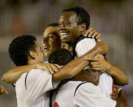 | NETVASCO - 04/05/2006 - 22:32 - VASCÃO VENCE VOLTA REDONDA E ESTÁ NAS SEMIFINAIS: 2 A 1 Pelo quarto ano consecutivo, a Copa do Brasil terá um time carioca na sua decisão. Nesta quinta-feira à noite, jogando em São Januário, o Vasco eliminou o Volta Redonda com uma vitória por 2 a 1 e garantiu vaga nas semifinais, contra o Fluminense, vice-campeão de 2005. O clássico definirá um dos finalistas da competição, que tem na outra semifinal mais um time carioca, o Flamengo (vice-campeão em 2003 e 2004), que enfrenta o Ipatinga-MG. Os jogos das semifinais serão nas duas próximas semanas, mas a CBF só definirá as datas e horários nesta sexta-feira. O sucesso destas três equipes cariocas na Copa do Brasil contrasta com a participação apagada no Campeonato Estadual deste ano. Em nenhum dos dois turnos, Vasco, Flamengo ou Fluminense chegaram às semifinais da competição. Na partida desta noite, Vasco e Volta Redonda entraram em campo com importantes desfalques. O Vasco estava sem Ramon, suspenso, enquanto o Volta Redonda perdeu na semana passada um dos seus principais jogadores, o meia Sérgio Manoel, que acertou seu retorno ao Botafogo. Mesmo assim, as duas equipes fizeram um jogo bastante movimentado. A partida de ida havia terminado com empate por 0 a 0, o que obrigava o Vasco a vencer para ficar com a vaga. O Volta Redonda lutou para empatar com gols, mas não conseguiu seu objetivo. O destaque da partida foi Edílson, que marcou os dois gols da sua equipe e acabou com um jejum de gols dele próprio e também dos atacantes do Vasco. A torcida presente em São Januário ovacionou o jogador, que deixou o gramado muito satisfeito com a atuação da sua equipe. "Todo o grupo está de parabéns. O time é jovem, às vezes peca, mas o mais importante é passar à próxima fase. O jogador consagrado aparece nas horas difíceis. Sempre que eu e o meu time estão em dificuldade dou a minha contribuição. Hoje a noite foi minha", disse Edílson. Com mais essa vitória, o Vasco aumentou para dez o número de jogos em que está invicto. Na Copa do Brasil deste ano, o time manteve os 100% de aproveitamento jogando no seu estádio, onde venceu Botafogo-PB (7 a 0), Iraty-PR (5 a 1), Criciúma (1 a 0) e, agora, Volta Redonda (2 a 1). Agora o Vasco dá uma parada na Copa do Brasil para um compromisso pelo Campeonato Brasileiro. Como está priorizando a competição em mata-mata, o técnico Renato Gaúcho estuda a possibilidade de escalar um time misto contra o Grêmio, domingo, às 16h, no estádio Olímpico, em Porto Alegre. O JOGO As duas equipes entraram em campo com propostas de jogo bem definidas. Enquanto o time da casa partiu para o ataque, tentando pressionar o adversário, os visitantes se fecharam para tentar as jogadas de contra-ataque. Logo aos 4min, um lance levantou a torcida do Vasco. A bola foi lançada ao ataque, Adriano saiu do gol, mas a zaga afastou no meio do caminho. Morais aproveitou o rebote e tentou, sem sucesso, encobrir o goleiro, que estava fora do gol. O Vasco seguiu pressionando o Volta Redonda, mas o time da região sul-fluminense foi quem quase abriu o placar. Aos 18min, a bola foi cruzada da esquerda e o zagueiro Fábio Braz quase marcou contra. Cássio fez a defesa parcial, Túlio ficou com o rebote, girou e chutou rente à trave. Até que, aos 29min, o Vasco chegou ao seu gol. Morais puxou o contra-ataque pelo meio e adiantou para Edílson na esquerda. O atacante entrou na área, cortou para o meio e chutou com força no ângulo esquerdo de Adriano. Após o gol, o Vasco se animou, mas levou um susto, aos 37min. Em lance de bola parada, o Volta Redonda levantou na área e Túlio marcou de cabeça. Mas a arbitragem flagrou o atacante em impedimento e invalidou o lance. "Vamos manter o mesmo ritmo porque esse gol do Vasco não vai nos abalar. Vamos entrar mais fortes no segundo tempo para conseguir o gol de empate", disse Túlio. E de fato o Volta Redonda começou a segunda etapa em busca da igualdade. Rodrigo Ítalo acertou o travessão logo no primeiro minuto e, aos 6min, Amaral acertou o gol. O meia recebeu na direita e, da entrada da área, chutou no canto direito de Cássio. O empate dava a classificação ao time visitante. Mas a aflição vascaína durou apenas quatro minutos. Após Valdiram atrapalhar Abedi a marcar o segundo gol (e ser substituído por isso), coube a Edílson aliviar a torcida. Aos 10min, o atacante aproveitou ótima jogada de Diego, que cruzou na sua cabeça, e deixou novamente o Vasco em vantagem: 2 a 1. Precisando do empate, o técnico Dário Lourenço promoveu três alterações na sua equipe. Na seqüência do jogo, a sua equipe chegou a rondar a área do Vasco, mas o time carioca segurou a vitória e assegurou presença nas semifinais. GALERIA