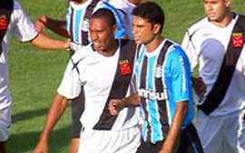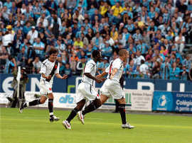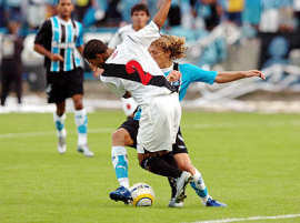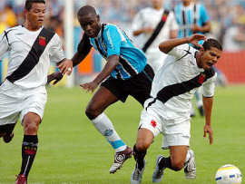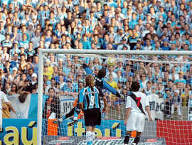 | NETVASCO - 07/05/2006 - 17:58 - EXPRESSINHO VENCE GRÊMIO DE VIRADA NO OLÍMPICO: 2 A 1 O Grêmio foi derrotado pelo time misto do Vasco por 2x1, neste domingo, no Olímpico, e não conseguiu se recuperar na tabela na quarta rodada do Campeonato Brasileiro. Depois de dois fracassos longe de casa, a equipe comandada por Mano Menezes trocou o esquema tático e mudou nos três setores, mas voltou a decepcionar, dessa vez, diante do seu torcedor. O técnico Renato Gaúcho, do clube carioca, poupou a maioria dos seus titulares tendo em vista a semifinal da Copa do Brasil. O mesmo já havia sido feito na rodada anterior, quando empatou em 1x1 no clássico contra o Fluminense. Os reservas, jogando no contra-ataque, além de somar três pontos contra o Tricolor, mantiveram a invencibilidade cruzmaltina na competição. O Grêmio, que considerava uma obrigação superar o Vasco neste domingo, precisa voltar a vencer nos próximos jogos, que serão fora de casa. O desafio seguinte será contra o Botafogo, no Rio de Janeiro. Nas quatro rodadas do Brasileiro, o time só conseguiu somar três pontos. O Vasco chegou aos oito pontos, se manteve na zona intermediária na tabela, e está em situação cômoda para enfrentar um adversário complicado na próxima rodada. No domingo, vai enfrentar o Goiás no Serra Dourada. O JOGO Logo no primeiro lance de ataque da partida, aos 2min, Patrício tentou cruzar da direita e a bola bateu na mão de Yves. O próprio lateral marcou 1x0 numa cobrança com categoria, deslocando o goleiro colocando a bola rasteira, no canto direito. Três minutos depois, o Grêmio teve outra boa chance de marcar. Patrício cobrou falta na área e o zagueiro Pereira subiu mais que todo mundo e cabeceou com perigo, por cima. Em lance semelhante, o Vasco chegou ao gol de empate. Ramón bateu falta da esquerda em direção ao gol, a zaga não afastou, Galatto saiu mal e Éder, bem posicionado, raspou de cabeça, marcando 1x1 aos 6min. Depois do eletrizante início, a partida ficou truncada, com muitas faltas, principalmente no meio-campo. O Tricolor exagerava nas tentativas de cruzamento, enquanto Ramón era o principal destaque vascaíno. Aos 19min, numa bonita troca de passes com Hugo e Patrício, Pedro Júnior chutou da entrada da área, mas Cássio bem colocado, segurou firme. O time carioca se preocupava em defender o empate, esperava a chance de contra-atacar. Os gaúchos mostravam lentidão, sem conseguir uma chance clara de marcar. O atacante Pedro júnior, querendo mostrar serviço, fez uma grande jogada aos 29min. Dominou no meio-de-campo, passou por quatro jogadores e foi derrubado na entrada da área. Marcelo Costa aproveitou a vantagem e chutou rasteiro, mas Cássio novamente fez segura defesa. O Vasco conseguiu a virada em um contra-ataque bem trabalhado. Os jogadores trocaram passes na entrada da área, e quando Alberoni tentou cruzar rasteiro, o zagueiro Pereira pegou mal na bola e encobriu Galatto. 2x1 em um gol contra. No intervalo, o volante Lucas estava indignado com os gols sofridos. "Não dá para acreditar no jeito que a bola entra no nosso gol", reclamava. Já o técnico Renato Gaúcho pedia a mesma dedicação do seu time para segurar a vitória. "Precisamos jogar, no mínimo, com a mesma garra que o Grêmio. Estamos mostrando isso e queremos seguir assim no segundo tempo", analisou. Os dois times voltaram com posturas diferentes par a etapa final. O Tricolor, sabendo da necessidade do resultado positivo, pressionava com diversos jogadores atacando. Já o Vasco se segurava, catimbando o jogo sempre que possível. A primeira chance de gol foi carioca, aos 6min. Ramón, em cobrança da falta do lado direito, chutou à meia altura, mas Galatto conseguiu difícil defesa. Empurrado pela torcida, o Tricolor assustava com cruzamentos, mas a força aérea não mostrava a conhecida eficiência. Aos 19min, Herrera recebeu na área e marcou, mas a bola bateu na sua mão na hora do domínio, e o árbitro anulou o lance. Depois da pressão nos vinte primeiros minutos, o Grêmio parecia nervoso e cansado. Apesar do domínio de jogo, os jogadores trocavam passes na intermediária sem encontrar espaço para a finalização. A partida era feia, com as duas equipes exagerando na marcação. A intranqüilidade tricolor, sabendo que a derrota o colocaria na zona de rebaixamento, ficou clara com a expulsão do volante Lucas, aos 40min. O garoto cometeu duas faltas duras, em dois lances consecutivos. O Vasco, mesmo sem ter levado perigo ao gol gaúcho, administrou bem a vantagem e saiu de campo com um grande placar. Já a torcida presente no Olímpico foi para a casa indignada e preocupada com seu time. GALERIA