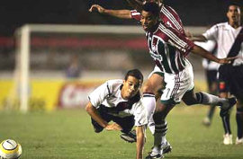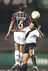 | NETVASCO - 11/05/2006 - 22:25 - VASCO VENCE FLU COM GOL DE EDILSON: 1 A 0 O Vasco é o time do Rio de Janeiro há mais tempo sem saber o que é uma derrota. Melhor, está em vantagem nas semifinais da Copa do Brasil, após vencer o Fluminense por 1 a 0, no Maracanã. O único gol da partida foi marcado por Edílson. As duas equipes entraram em campo nesta quinta à noite ostentando longa série de partidas sem derrotas. Enquanto o Vasco completou agora 12 jogos sem perder, o Fluminense estava invicto havia 14 partidas. O primeiro tempo do jogo ainda deixou a impressão de que a equipe tricolor teria mais condições de quebrar a invencibilidade adversária. Mas, apesar de total domínio, o Fluminense criou pouco e não conseguiu marcar. "Fomos flagrantemente melhores", afirmou Oswaldo de Oliveira, técnico do Fluminense, sobre a etapa inicial. "Na segunda etapa as ações foram mais equilibradas", continuou o técnico tricolor. E com razão. No segundo tempo, o Vasco jogou melhor e conseguiu sair mais de seu campo de defesa, além de evitar qualquer tentativa do Flu de voltar a pressionar. "O Renato (Gaúcho) deu uma sacudida no intervalo", afirmou o goleiro vascaíno Cássio, sobre a bronca do técnico após a etapa inicial. Bem na partida, os vascaínos chegaram ao gol da vitória aos 32min, com Edílson aproveitando cruzamento de Ernane. "Atacante tem que estar no momento certo, na hora certa para poder ajudar a equipe", disse o camisa 10 do Vasco sobre seu gol. Fluminense e Vasco voltarão a se enfrentar na próxima quarta-feira, pela partida de volta. Qualquer empate classifica os vascaínos, enquanto os tricolores terão de vencer por dois gols de diferença para garantir a vaga na final automaticamente. Inicialmente, o jogo está marcado novamente para o Maracanã. Mas o Vasco ainda promete lutar na Justiça para mandar a partida em São Januário. Caso consiga, o time de Eurico Miranda ainda pode ser beneficiado por ter marcado um gol supostamente fora de casa. O JOGO No primeiro tempo, o Fluminense foi superior desde os primeiros minutos. Depois de boas chances em chute longo de Petkovic e cabeçada de Roger, livre na área, o time tricolor chegou a marcar. Thiago Silva, aos 13min, desviou para o gol, mas em posição irregular. A jogada foi anulada. Com forte marcação em seu campo de defesa, o Fluminense matou qualquer tentativa de o Vasco contra-atacar. E continuou pressionando. Jean, aos 17min, recebeu de Roger na entrada da área e chutou forte. A bola desviou no travessão e saiu. No entanto, apesar de continuar cercando o sistema defensivo do Vasco, o Flu teve dificuldades para continuar criando. Já o Vasco quase nada fez. Apenas aos 38min, em chute fraco de Roberto Lopes, a bola foi ao gol tricolor, defendida por Fernando Henrique. Os jogadores das duas equipes, no intervalo, reconheceram o domínio tricolor. "Nossa equipe está com mais volume de jogo, mas precisamos fazer o gol", lamentou o atacante Tuta, do Fluminense. "Estamos encurralando o Vasco", completou o zagueiro Thiago. Apesar da falta do gol, os tricolores tentaram controlar a impaciência para a etapa final. "A gente está atacando e tem que continuar assim", disse Petkovic. "Estamos chegando no gol do Vasco pelos lados de campo e temos de continuar assim que o gol irá sair", fechou Roger. Os vascaínos, pelo outro lado, reconheceram a má atuação. "Estamos sem aproximação e quando você não aproxima o jogador fica sozinho e perde a bola", reclamou Edílson. "Temos de melhorar a marcação aos laterais, que estão confundindo a nossa defesa", explicou Ygor. Buscando essa melhora na partida, o técnico Renato Gaúcho, do Vasco, voltou para a etapa final com uma alteração. O volante Roberto Lopes, que já tinha um cartão amarelo, foi substituído por Abedi, segundo o treinador, para "melhorar a saída de bola". O Vasco melhorou como um todo e começou a etapa final no ataque. A equipe vascaína quase marcou aos 13min. Morais chutou forte de fora da área e acertou o travessão do gol de Fernando Henrique. Assustado, o Fluminense deixou de pressionar. A equipe tricolor só conseguiu chegar ao ataque com perigo aos 23min. Lenny arrancou com a bola, invadiu a área, mas, após disputar a jogada com Diego, tocou desequilibrado na saída de Cássio. O chute saiu fraco e a zaga vascaína afastou. Quando conseguia voltar a ter mais domínio da bola, o Fluminense sofreu o gol. Aos 32min, Morais começou a jogada pelo meio e rolou na direita para Ernane. O meia cruzou para Edílson, livre quase na marca do pênalti, bater de primeira e marcar. O gol abateu completamente o Fluminense. O time tricolor, que já havia perdido Arouca lesionado, com a entrada de Romeu, também buscou o gol com Cláudio Pitbull. No entanto, com pouca organização, parou na forte marcação vascaína até o fim do jogo. GALERIA