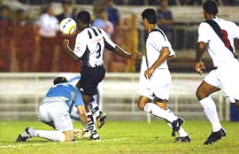 | NETVASCO - 25/05/2006 - 22:27 - Vasco é goleado pelo Botafogo no Maracanã: 4 a 1 Com um novo técnico, o Botafogo fez mais em uma partida do que em cinco com Carlos Roberto e se reabilitou da má fase em grande estilo. Mesmo sem ter feito sequer um coletivo com Cuca, nesta quarta, na estréia do treinador, o time goleou o Vasco por 4 a 1, no Maracanã, pelo Brasileiro, e voltou a vencer após cinco partidas. De quebra, impôs ao rival sua terceira derrota seguida na Série A. O grande destaque foi Dodô, que fez três. Ele abriu o placar com mais um golaço (chute no ângulo) para a sua coleção e acabou com um jejum de quatro jogos sem marcar. Depois, o atacante fez outro de pênalti e o terceiro no segundo tempo. Ainda na etapa inicial, Claiton fez seu primeiro gol com a camisa alvinegra. Abedi descontou para o Vasco no segundo tempo. A vitória foi muito importante para o Botafogo, que saiu da zona do rebaixamento. Com os três pontos conquistados nesta noite, a equipe da Estrela Solitária foi a oito e pulou para o 13º lugar. Do outro lado, o Vasco permaneceu com oito pontos e perdeu a chance de ficar entre os 11 primeiros colocados que se classificam para a Copa Sul-Americana ao final do Brasileiro. O time está na 16ª posição. Para o Botafogo, tão valiosa quanto os três pontos foi a reabilitação. A equipe não vencia desde a partida de estréia no campeonato, contra o Fortaleza, no Maracanã, há mais de um mês. De lá para cá, o time empatou dois jogos e perdeu outros três, até voltar a ganhar nesta quinta-feira. Foi justamente por causa desses maus resultados que a diretoria alvinegra demitiu o técnico Carlos Roberto e contratou Cuca. A vitória logo na estréia dá confiança e tranqüilidade para o novo treinador neste início de trabalho. Enquanto isso, no Vasco, a euforia pela classificação às finais da Copa do Brasil começa a virar "ressaca". Após eliminar o rival Fluminense na semifinal do torneio, o time perdeu dois jogos seguidos - para Botafogo e Corinthians, no último domingo. Pelo Brasileiro, a equipe também foi derrotada na rodada anterior, pelo Goiás. Botafogo e Vasco voltam a campo no próximo domingo para a disputa da oitava rodada da Série A. Enquanto os alvinegros vão à Recife para enfrentar o Santa Cruz, às 16h, os cruzmaltinos, sem Ramon, que levou o terceiro cartão amarelo, recebem o São Paulo, em São Januário, às 18h10. O JOGO O Botafogo começou bem e abriu o placar logo aos 4min numa especialidade de Dodô: golaço. Ele dominou na meia esquerda, trouxe para o meio e chutou forte da entrada da área. A bola entrou no ângulo esquerdo do goleiro Roberto. O Vasco procurou pressionar mais e chegou com certo perigo aos 14min. Após cobrança de escanteio da direita, Edílson ajeitou com o peito para Ygor, que chutou forte de primeira. A bola saiu rente ao travessão de Lopes. O Vasco passou a ter mais posse de bola, enquanto o Botafogo procurou explorar os contra-ataques. De tanto insistir, aos 33min, o time de São Januário chegou perto do gol. Edílson pegou o rebote da zaga e chutou de primeira da entrada da área, pela direita, mas o goleiro caiu no canto esquerdo para espalmar. Contudo, justamente num contra-ataque, o Botafogo ampliou a vantagem através de pênalti, aos 37min. Roberto derrubou Reinaldo na pequena área e o árbitro marcou. Dodô cobrou rasteiro, no canto esquerdo do goleiro, que caiu no canto certo, mas não alcançou. O Vasco não se abateu e sufocou o Botafogo. Aos 40min, Valdiram recebeu passe de Edílson, invadiu a área pela direita e chutou forte. Lopes espalmou e a bola ainda tocou na trave direita do goleiro. Mas o Botafogo marcou o terceiro em outro contra-ataque, aos 45min. Após roubada de bola de Ataliba, a bola chegou a Claiton. Ele tabelou com Reinaldo, recebendo passe de letra do atacante, dominou na área e tocou rasteiro no canto esquerdo de Roberto, na saída do goleiro. O Vasco voltou para o segundo tempo com o meia Abedi no lugar do volante Andrade e disposto a empatar o jogo. Logo aos 8min, Edílson entrou livre pela direita, mas na hora do chute foi travado por Asprilla. Aos 12min, Faioli, que tinha acabado de entrar no lugar de Valdiram, recebeu passe de Ramon e dividiu com o goleiro na pequena área. O vascaíno ganhou a disputa e chutou sem ângulo, mas Asprilla salvou de novo, em cima da linha. Um minuto depois, Ygor chutou forte da entrada da área e Lopes espalmou. De tanto insistir, o Vasco diminuiu aos 26min. Abedi aproveitou a sobra da zaga, dominou dentro da grande área, pela direita, e chutou na saída de Lopes. Mas o Botafogo não se abalou e marcou o quarto, aos 31min. Marcelinho avançou pela meia direita e tocou no meio da área para Dodô, que estava sozinho. O atacante dominou e chutou na saída de Roberto. GALERIA