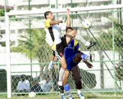 | NETVASCO - 24/06/2006 - 17:56 - Vasco vence o Madureira em jogo-treino por 2 a 0 No jogo-treino entre Vasco e Madureira, realizado na tarde deste sábado, no Vasco-Barra, o time vascaíno venceu por 2 a 0. Ramon abriu o placar aos 20 minutos, com um belo gol de falta. No segundo tempo, aos 12, Fábio Júnior recebeu um cruzamento de Claudemir pela direita e marcou de carrinho. Aos 23 minutos, o técnico Renato Gaúcho fez oito alterações no time colocando: Roberto, Thiago Maciel, Carlão, Thales, Ives, Alberoni, Ricardinho e Valdir Papel. Ao final do jogo-treino os jogadores do Vasco reclamaram muito do gramado do Vasco-Barra, alegando que o campo estava duro e com buracos. Apesar das dificuldades, o meia Ramon gostou da atuação do time. - A nossa movimentação foi muito boa. Precisamos aprimorar a parte técnica, mas isso conseguiremos com o decorrer dos jogos - disse o jogador. Ygor e Edílson não participaram do jogo-treino e ficaram tratando de suas lesões em São Januário. Wágner Diniz foi liberado para o seu casamento, marcado para este sábado, às 18h, em Maceió. Vasco: Cássio (Roberto), Claudemir (Thiago Maciel), Fábio Braz (Carlão), Jorge Luiz (Thales) e Diego (Thyago Fernandes); Roberto Lopes (Ives), Andrade (Alberoni), Morais (Ernane) e Ramon (Ricardinho); Valdiram (Valdir Papel) e Faioli (Fábio Júnior). ![]() ![]() Fonte: Lancenet (texto), Jornal dos Sports (fotos) |