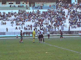 | NETVASCO - 02/07/2006 - 17:06 - Vasco empata com Serrano-BA em amistoso: 2 a 2 Em amistoso realizado na tarde deste domingo (02/07) no estádio Lomanto Júnior (Lomantão), em Vitória da Conquista (BA), o Vasco empatou com o Serrano, da 2ª divisão baiana, por 2 a 2. Pena abriu o placar para o time da casa aos 10 minutos do primeiro tempo, de cabeça, após cobrança de escanteio de Claudinho. Ernane empatou para o Vasco aos 42 minutos aproveitando cruzamento de Abedi. No segundo tempo, Cleiton pôs o Serrano novamente em vantagem logo aos 3 minutos após cruzamento de Pena. Mas o Vasco voltou a empatar aos 7 minutos, com Fábio Braz, de cabeça, escorando um cruzamento de Ernane. Aos 19 minutos da etapa final o zagueiro Fábio Braz, autor do gol do Vasco, foi expulso, mas mesmo assim o Clube da Colina conseguiu segurar o empate. A nota triste ficou por conta do lateral-esquerdo Thyago Fernandes, que sentiu a musculatora posterior da coxa e deixou o campo aos 3 minutos do 2º tempo dando lugar a Carlão. Apesar do resultado, os jogadores se mostraram tranqüilos com a boa atuação. No geral, todos estiveram muito bem em campo. “Foi importante para dar ritmo de jogo aos atletas”, disse Ernane.