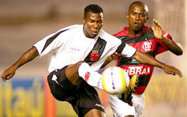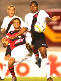 | NETVASCO - 16/07/2006 - 20:08 - Expressinho devora o aperitivo: Vasco 1 a 0 Urubu O Flamengo optou por só poupar um titular e mesmo assim conseguiu perder para o time reserva do Vasco. Neste domingo, no "amistoso" pré-decisão da Copa do Brasil, os rivais fizeram um jogo sofrível, em que a estratégia vascaína de contra-ataques superou a confusa equipe comandada por Ney Franco e venceu por 1 a 0. O clima de "amistoso" do duelo começou desde as escalações. Enquanto o Fla optou por poupar Renato e também não contou com Juan e Jônatas, que forçaram o terceiro cartão amarelo na partida anterior, o Vasco só mandou a campo um titular: o goleiro Cássio. Diante do pouco caso dos treinadores, os torcedores também pouparam suas forças para a final de quarta-feira e compareceram em pouco número. Para azar dos que foram, as chances de gol foram escassas. No primeiro tempo, o time rubro-negro foi superior, mas finalizou mal. Na etapa final as duas equipes pioraram sensivelmente, mas o Vasco conseguiu garantir os três pontos em uma de suas raras finalizações. O empate deflagra uma crise no time rubro-negro, que coleciona duas derrotas seguidas. O sistema de jogo confuso idealizado por Ney Franco começa a ser alvo de severas críticas e apenas o título da Copa do Brasil o manterá no cargo. No momento, o Flamengo tem 14 pontos na tabela e se aproxima da área de descenso. A vitória do time B sobre o arqui-rival anima o Vasco para a final e o posiciona melhor no Brasileiro, já que o time pulou para os 16 pontos. Agora, enfim, os dois cariocas podem se dedicar exclusivamente ao sonho da Copa do Brasil. O primeiro jogo está marcado para quarta-feira, às 21h45. No torneio por pontos corridos o desafio do Flamengo será contra o Santa Cruz, em Recife, enquanto o Vasco pega o Atlético-PR, em São Januário. O JOGO Culpa dos desfalques ou não, o clássico começou em ritmo lento. Apenas aos 8min, Luizão fez boa jogada pela esquerda e cruzou rasteiro para o meio da área. De primeira, Léo Medeiros bateu para fora. Com maior posse de bola, o Flamengo quase marcou aos 19min. Toró levantou para Leonardo Moura, que driblou o marcador em um toque, mas chutou para fora. Outra chance ocorreu dois minutos depois, mas a finalização de Léo Medeiros foi defendida por Cássio. Os reservas vascaínos demoraram a quebrar a ineficiência ofensiva que não deram qualquer chute ao gol no primeiro tempo. Por sua vez, o time rubro-negro continuou mais incisivo. Aos 40min, Toró chutou e Cássio defendeu. Um minuto depois foi a vez de Renato Augusto bater para fora. No último lance do segundo tempo, Ronaldo Angelim ajeitou de cabeça e Luizão, cara a cara com Cássio, chutou de canela para fora. "Não conseguimos nenhum ataque, mas na hora que encaixar a gente pode fazer o gol", explicou o goleiro vascaíno. O Vasco melhorou um pouco na etapa final, mas a primeira chance foi dos rubro-negros. Aos 4min, Léo Medeiros bateu rasteiro para o meio da área, Luizão tentou de carrinho e a bola bateu em Cássio. O jogo caiu ainda mais de ritmo e as torcidas começaram a se irritar. Aos 13min, Renato Augusto conduziu e chutou para defesa do goleiro vascaíno. O Vasco enfim chutou com perigo aos 15min, com Alberoni. Os erros primários na execução das jogadas cansaram os torcedores e as vaias começaram a aparecer em maior escala a partir da metade do segundo tempo. Junto com elas quem também subiu de produção foi o time cruz-maltino. Aos 30min, Paulão desviou de cabeça, Faioli atrapalhou e o Vasco abriu o placar. Muito mal, o Flamengo não conseguiu articular uma reação e quase sofreu o segundo, aos 42min. Madson chutou e Diego espalmou. GALERIA