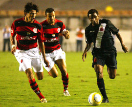 | NETVASCO - 26/07/2006 - 23:54 - Vasco perde o título da Copa do Brasil: Urubu 1 a 0 O Flamengo é bicampeão da Copa do Brasil. Mais que isso, com uma nova vitória sobre o Vasco, 1 a 0, o time rubro-negro ainda conseguiu quebrar um longo jejum em torneios nacionais, garantiu presença mais uma vez na Copa Libertadores e ainda ampliou para cinco os triunfos sobre o rival vascaíno em decisões. Como já havia vencido o primeiro jogo por 2 a 0, o Fla entrou mais tranqüilo no Maracanã e soube explorar o nervosismo do Vasco, que perdeu o centroavante Valdir Papel expulso logo aos 16min do primeiro tempo. Consciente, o time dirigido por Ney Franco tocou bem a bola, marcou seu gol - com Juan - e voltou a ser campeão nacional depois de 14 anos. O último título havia sido o Brasileiro de 1992. De lá para cá, foram três finais de Copa do Brasil - 1997, 2003 e 2004 - e três vices-campeonato. O clube ainda conquistou a Copa dos Campeões de 2001, torneio que o credenciou a Libertadores de 2002, mas a competição, que não existe mais, era curta e sem tradição no país. Agora, o título de certa forma apaga os recentes fracassos, até porque foi conquistado em cima do Vasco, um de seus maiores rivais. Além disso, sacramentou ainda mais a fama de "freguês" do rival em decisões, já que nos últimos oito anos o Fla sagrou-se campeão em cima do time de São Januário em cinco oportunidades. Para chegar a esse título, a vontade superou a técnica no Flamengo. Sem nenhuma grande estrela, o time dirigido por Ney Franco demonstrou solidariedade nas partidas finais e venceu a desconfiança dos torcedores, já que não realiza boa campanha no Brasileiro. Para isso, foi fundamental a atuação do treinador, que chegou cercado ao clube pouco antes da Copa do Mundo, depois da polêmica demissão de Waldemar Lemos, que classificou o time para a final da Copa do Brasil e era muito querido pelos jogadores e pela torcida. Entretanto, Ney Franco mostrou muita competência ao armar o time no esquema 3-6-1 nessas finais, escalando três zagueiros e apenas Luizão na frente. O time foi amplamente superior nos dois jogos, dominou o meio-campo e conseguiu conquistar seu segundo troféu do torneio - o primeiro foi levantado em 1990. Já o Vasco segue sem conseguir vencer uma Copa do Brasil. Essa foi a primeira decisão do clube, que tentava um alento após temporadas insossas desde o título do Campeonato Brasileiro de 2000. Contudo, a equipe, também limitada tecnicamente, esbarrou na maior determinação do Flamengo na primeira partida e não demonstrou poder para conseguir um triunfo por ao menos dois gols de diferença, que levariam a final para a disputa de pênaltis. Agora, resta saber como ficará o clima em São Januário, que já viveu uma semana confusa, com torcedores protestando e sendo agredidos pelos seguranças do clube. Um bom termômetro será a partida deste domingo, contra o Cruzeiro, no Rio de Janeiro, pelo Brasileiro. Por sua vez, o Flamengo, que beira a zona do rebaixamento do certame nacional, ganha estímulo para deixar a parte de trás da tabela e tem a chance de começar uma guinada também no domingo, no duelo rubro-negro contra o Atlético-PR, em Curitiba. O JOGO Foi um primeiro tempo entre um time extremamente nervoso - Vasco - e um tranqüilo, o Flamengo. Prova disso foi a atitude do atacante vascaíno Valdir Papel. Aos 3min, o jogador recebeu cartão amarelo. Depois, aos 17min, deu um carrinho desnecessário em Leonardo Moura e foi expulso de campo. O fato irritou muito o técnico Renato Gaúcho, que empurrou o atacante e o xingou muito na saída de campo: "Sai daqui, vai embora p.". Descontrolado, o treinador não deve ter visto Morais quase marcar em belo chute de primeira da entrada da área, que Diego espalmou aos 18min. Imediatamente, Ney Franco mexeu na equipe do Flamengo e a tornou mais ofensiva, tirando Toró - que já tinha cartão amarelo - e colocando o atacante Obina. Em seu primeiro lance, aos 24min, Obina invadiu a área e chutou cruzado, mas Fábio Braz se esticou e evitou o gol. Contudo, o Fla abriu o placar logo depois. Aos 28min, após rebatida da defesa do Vasco em chute de Leonardo Moura, a bola sobrou para Juan na meia-lua. O chute saiu forte, rasteiro, no canto esquerdo de Cássio. "Fazer gol é sempre importante, ainda mais em uma final contra o Vasco da Gama. Não dá nem pra explicar a sensação", vibrou Juan. Desesperado na beira do gramado, Renato Gaúcho mexeu no Vasco e tirou Ramon, colocando o atacante Valdiram, que fora barrado durante a semana para a entrada de Valdir Papel. Mas a mudança não surtiu efeito. Dentro de campo, o Vasco era o retrato do seu treinador fora dele e errou passes em demasia. Dono do jogo, o Flamengo trocou passes e desde os 35min passou a ouvir os gritos de "olé" de sua torcida, em êxtase no Maracanã. "Temos que continuar jogando e tentando, é o jeito. Mas é difícil, ainda mais com um homem a menos", lamentou Edílson, na saída de campo para o intervalo. "Com um a mais em campo temos de ter inteligência e ficar com a bola nos pés, para sair daqui com esse título", disse o volante Jônatas, do Flamengo. Antes de a bola rolar para o segundo tempo, Luizão, no centro do gramado, pediu o canto da torcida rubro-negra. Nem precisava. Empolgados com a proximidade do título, os torcedores não pararam de cantar, enquanto à direita das cabines de tv e rádio os vascaínos estavam quietos, mas na esperança de um "milagre". Renato Gaúcho tentou todas as cartadas que podia e antes dos 12min tirou Andrade e Morais para as entradas de Abedi e Ernane. O Vasco lutou, mas foi pouco para superar o bem armado Flamengo e que quase ampliou aos 15min, quando Jônatas driblou Ygor e Jorge Luiz e parou nas mãos de Cássio, que evitou um golaço. Atraindo o Vasco para seu campo, o Flamengo conseguiu bons contra-ataques e, aos 21min, Luizão recebeu sozinho na entrada da área, mas o chute bateu na trave direita do Vasco. A