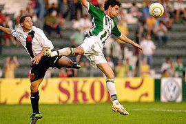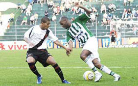 | NETVASCO - 12/08/2006 - 17:55 - Vasco arranca empate contra o Juventude em Caxias do Sul: 0 a 0 Vasco e Juventude seguem parelhos no Campeonato Brasileiro. O monótono empate por 0 a 0 entre as equipes, neste sábado, em Caxias do Sul, mantém os times empacados na zona de classificação para a Sul-Americana, onde estão há praticamente todo o campeonato, ao final desta 16ª rodada. O treinador, que respondeu a Ramon na imprensa dizendo que vai continuar substituindo quem achar necessário, colocou Madson no lugar do meia no segundo tempo. O empate (cujo placar refletiu bem o péssimo nível técnico de uma das piores partidas deste Brasileiro) atrapalha novamente as equipes na tentativa de chegar ao grupo dos quatro primeiros que vão à Libertadores. O Vasco foi a 23 pontos e ganhou apenas uma posição - subiu da oitava para a sétima. Já o Juventude foi a 21 e permaneceu na nona colocação. Vasco e Juventude passaram quase todo o campeonato entre a quinta e a 11ª colocação. Após 16 rodadas, o time gaúcho fica nesta zona pela 13ª vez, mas nenhuma entre os quatro primeiros. Já o Vasco, quarto lugar após a segunda rodada, permanece na zona para a Sul-Americana pela nona oportunidade. Mas o time cruzmaltino segue com fraca campanha como visitante. A equipe não vence fora de casa há três meses - desde o dia 7 de maio, quando derrotou o Grêmio por 2 a 1, em Porto Alegre. Na rodada passada, o Vasco perdeu por 2 a 1 para o Paraná, em Curitiba. Já o Juventude manteve uma invencibilidade de quatro partidas como mandante - antes, venceu Inter e Figueirense e empatou com São Paulo. Por sinal, o time tem um bom aproveitamento atuando em Caxias. Contando com a partida deste sábado, a equipe disputou nove jogos em casa, venceu cinco, empatou três e perdeu só um - aproveitamento de 66%. Vasco e Juventude voltam a campo no meio da próxima semana para a disputa da 17ª rodada do Brasileiro. Enquanto o time carioca recebe o São Caetano, na quarta-feira, às 19h30, no Rio, o gaúcho vai a São Paulo para enfrentar o Palmeiras, na quinta, às 20h30. Pelo Juventude, Ernani (ex-Americano) herdou a vaga do titular Zé Rodolpho, que, devido a um acidente de trânsito, teve de passar por uma cirurgia no tornozelo e ficará três meses afastado dos gramados. Já pelo Vasco, Sandro, de 20 anos, contratado do Vitória-BA no final de julho, entrou durante a partida, no lugar de Diego, que saiu lesionado. O JOGO Apesar do empenho das equipes, o início da partida foi marcado pelo baixo nível técnico. Atuando apenas com Faioli no ataque, os cruzmaltinos apresentavam pouco poder de fogo, enquanto o time local nada conseguia de produtivo. O primeiro lance merecedor de registro só aconteceu aos 19 minutos, quando Ernani arriscou de fora da área e Cássio colocou para escanteio a ser cobrado pelos gaúchos. Aos 26 minutos, o lateral Diego torceu o tornozelo direito e deixou o gramado para a entrada de Sandro, na primeira alteração promovida pelo treinador vascaíno, Renato Gaúcho O Juventude passou a rondar a área adversária, em busca do primeiro gol. Aos 33, Christian recebeu livre pelo lado direito, mas chutou em cima do goleiro do Vasco. Somente aos 37 minutos a equipe carioca conseguiu chegar com algum perigo à meta contrária. Sandro cruzou da esquerda e Ramon cabeceou por cima do gol defendido por André. Para a segunda etapa, o time local veio com Ivo no lugar do estreante Ernani, que não vinha bem e era muito vaiado pelos torcedores. O Juventude voltou mais agressivo, chegando com algum perigo com Renan, Marcel e Christian, entre o oitavo e nono minutos. Logo em seguida, o técnico vascaíno, Renato Gaúcho, trocou Ramon por Madson. Apesar do maior volume de jogo dos locais, a partida seguia fraca, sem motivar os torcedores que reclamavam da baixa qualidade apresentada pelos dois times. Aos 23 minutos, Ygor chutou da entrada da área, a bola bateu na defesa contrária e quase enganou André, que conseguiu voltar a tempo e evitar a abertura da contagem. Satisfeito com o empate, o time carioca se fechou ainda mais no meio-campo, procurando evitar as chegadas do improdutivo ataque do Juventude. E, aos 38 minutos, quase chegou a vitória, quando Ygor aproveitou falha do experiente zagueiro Antônio Carlos e cruzou para Madson, livre, chutar por cima, com André já batido. Aos 41, o Juventude ainda tentou com uma cabeçada de Fabrício, mas Cássio colocou para escanteio. aos 44, Ivo cruzou da esquerda, Marco Antônio pegou de primeira, mas o goleiro do Vasco manteve o 0 x 0, placar justo para a fraca partida realizada no Alfredo Jaconi. GALERIA
