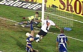 O único gol da equipe carioca na derrota por 2 a 1 foi marcado pelo lateral-esquerdo Diego. Com isso, os atacantes do Vasco completaram oito partidas sem conseguir marcar um gol no Brasileirão. O último jogador do ataque a marcar foi Faioli, no empate por 1 a 1 com o Fortaleza. Nesta quarta, porém, o jogador não foi bem. Apesar de boa participação, Faioli perdeu algumas boas chances, a melhor delas (foto) no segundo tempo, na pequena área, com o goleiro Mauro, do São Caetano, praticamente batido. "Faltou fazer o gol. Tivemos uma chance com o Faioli, mas perdemos", lamentou o atacante Jean, que, apesar dos 40 dias aguardando para fazer sua estréia, atuou durante toda a aprtida e teve boa movimentação. O próprio Faioli lamentou as oportunidades desperdiçadas. "Estivemos melhores em boa parte do jogo e com bolas boas para finalizar", disse o jogador, que pode perder a vaga no time titular com a volta de Edílson. Dos 21 gols marcados pelo Vasco no Brasileirão, apenas dois foram de atacantes. Além daquele de Faioli, Valdiram também fez um, na derrota por 4 a 2 para o Corinthians. O artilheiro do time no campeonato é o meia Abedi, com quatro gols. O jogo contra o São Caetano ainda marcou a volta de Valdiram ao time. Desde a final da Copa do Brasil, quando o Vasco perdeu o título para o Flamengo, o atacante não defendia a equipe de São Januário, afastado por Renato Gaúcho por indisciplina. Agora opção no banco, Valdiram viu Jean ganhar a camisa 7, que vinha usando em toda temporada. Fonte: Pelé.Net |