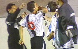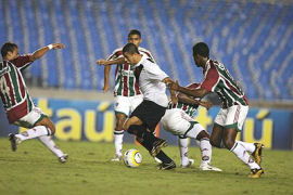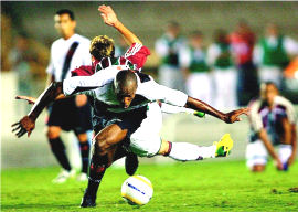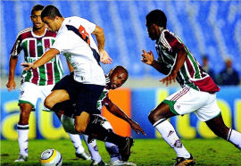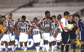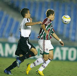 | NETVASCO - 03/09/2006 - 20:04 - Vasco empata com Fluminense e continua em 5º: 1 a 1 No clássico dos opostos, não deu nem para o Fluminense, que atravessa momento de crise, nem para o Vasco, favorito que curte a ascensão. Com atuações abaixo da crítica, principalmente no primeiro tempo, as duas equipes empataram por 1 a 1, em jogo válido pela 22ª rodada do Campeonato Brasileiro, na noite deste domingo, no Maracanã. Pela situação que os dois times vivem na competição, o resultado teve reflexos diferentes. O Vasco entrou em campo com três zagueiros e o ponto conquistado manteve a equipe de São Januário na quinta colocação, agora com 34 pontos. Primeiro foi Renato Gaúcho, que em um lance na lateral escondeu a bola de Juliano e ainda empurrou o jogador do Flu. Em seguida foi a vez de Antônio Lopes, que reclamou muito depois de uma jogada em que Lenny foi ao chão. "Eu falei com o meu jogador! Não foi contigo não", reclamou o técnico tricolor, para depois seguir resmungando com o quarto árbitro: "ele é muito folgado. Estava falando com o meu jogador". A posição na tabela mantém o Vasco na zona de classificação para a Libertadores pela terceira rodada consecutiva. Como o Internacional, atual campeão da competição sul-americana, ocupa a quarta colocação do Brasileiro, automaticamente abre-se mais uma vaga, momentaneamente ocupada pelo time de Renato Gaúcho. No lado tricolor, o empate levou o Fluminense a completar a sexta partida sem vitória. O time, que chegou a liderar a competição em duas rodadas, chegou aos 30 pontos e agora ocupa a nona posição na tabela, bem distante dos líderes. O técnico Antônio Lopes, que esteve muito agitado à beira do campo, comandou o time pela terceira vez e não conseguiu sua primeira vitória pelo clube. No meio de semana as duas equipes dão uma parada no Campeonato Brasileiro para se concentrarem na primeira fase da Copa Sul-Americana. Na quarta-feira, o Vasco recebe o Corinthians, às 22h, em São Januário, enquanto o Fluminense pega o Botafogo, na quinta, às 19h, no Maracanã. Pelo Campeonato Brasileiro, o próximo compromisso do Vasco será no sábado, dia 9. O time de São Januário jogará em casa, contra o Grêmio, às 18h10. No dia seguinte, o Fluminense vai até Curitiba para enfrentar o Paraná, às 16h, no estádio Pinheirão. O JOGO O jogo começou com muitas jogadas erradas. Os times pareciam nervosos e não conseguiam trocar passes. A primeira chance de gol surgiu apenas aos oito minutos. Lenny fez bom passe para Tuta, o atacante protegeu e chutou. Cássio defendeu. Aos nove, Jean partiu em velocidade e rolou até Faioli, que desperdiçou a oportunidade. Aos 17, Jean recebeu passe e rolou para Morais, o meia soltou uma bomba à direita da meta tricolor. Apesar de ter mais posse de bola, o time de São Januário não ameaçava Diego. Aos 28, Jean, um dos mais lúcidos do time, arriscou e o goleiro tricolor defendeu sem problemas. Porém, a melhor chance da primeira etapa coube ao Fluminense. Aos 30, Juliano cruzou, Marcão cabeceou, a bola desviou na zaga cruzmaltina e assustou Cássio. A resposta vascaína veio logo em seguida. Diego cruzou da esquerda e arqueiro tricolor tirou de soco. Aos 37, explorando bem o lado esquerdo de ataque, o time das Laranjeiras quase marcou. Após bela tabela com Juliano, Roger cruzou, mas, providencialmente, Claudemir cortou. Ao final do primeiro tempo, os jogadores das duas equipes concordaram na análise parcial. "Está um jogo muito truncado, quase sem oportunidades, com as jogadas todas no meio. Temos que nos movimentar mais. Assim que tem que ser", disse o atacante vascaíno Jean. Após o primeiro tempo ruim, as duas equipes voltaram mais aplicadas, contudo, as chances de gols permaneciam escassas. O Tricolor teve ótima oportunidade aos cinco. Após cruzamento de Rissut, Tuta ganhou no alto e cabeceou, Cássio espalmou para córner. Dez minutos depois, Lenny recebeu, driblou Andrade, mas o goleiro abafou o lance. Aos 19, o Vasco perdeu sua melhor chance na partida. Jean driblou Anderson e Rissutt, mas Diego fez defesa milagrosa. Aos 22, os técnicos começaram as alterações. Para dar mais movimentação no setor ofensivo, o técnico Antônio Lopes pôs Osmar no lugar de Lenny. Com o mesmo propósito, Renato Gaúcho sacou Andrade e promoveu Abedi. A substituição surtiu efeito para o Fluminense. Aos 26, a promessa tricolor deixou Tuta na cara de Cássio. O atacante encobriu Cássio e fez: 1 x 0. Só que alegria durou pouco. Quatro minutos depois, o árbitro paulista assinalou pênalti de Romeu no Jorge Luiz. Morais bateu e igualou o marcador. A partir daí, as equipes fizeram de tudo para sair com os três pontos. Aos 43, o Vasco perdeu Jorge Luiz, expulso. Na seqüência, Tuta cabeceou para meio e Osmar, sozinho, mandou no travessão. Após o lance, muita luta, mas a igualdade foi sacramentada. GALERIA