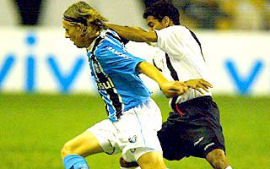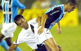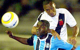 | NETVASCO - 09/09/2006 - 20:08 - Vasco empata com Grêmio em São Januário: 1 a 1 No duelo dos ascendentes do Campeonato Brasileiro, o equilíbrio prevaleceu. Na noite deste sábado, pela 23ª rodada, Vasco e Grêmio fizeram um jogo disputado em São Januário e empataram por 1 a 1. Para efeito classificatório, o resultado foi melhor para os gaúchos, que pularam para os 39 pontos e assumiram - ao menos provisoriamente - a vice-liderança do torneio. Os comandados de Mano Menezes interrompem uma seqüência de quatro vitórias. Por sua vez, apesar de manter a invencibilidade, que atinge seis partidas, o Vasco coleciona o terceiro empate consecutivo no Rio de Janeiro e não "desenvolve" mais na tabela. A equipe carioca chegou aos 35 pontos e segue rondando a zona Libertadores. A importância deste Vasco e Grêmio, com os dois times disputando as primeiras posições na tabela, chegou a ser "estranha" por causa do histórico recente dos clubes no Brasileiro. Neste século, os dois só tiveram campanhas de discretas para baixo e usualmente lutaram contra o rebaixamento - o time tricolor perdeu a batalha contra o descenso em 2004. Mas neste sábado, diante de um estádio com bom público, as equipes foram dinâmicas e fizeram um espetáculo agradável. Se Hugo comandou o meio-campo gremista com passes insinuantes, Jean perturbou a zaga rival com jogadas pela ponta direita. Os dois gols saíram no primeiro tempo e ambos saíram em chutes de longa distância. Lucas abriu o placar para os visitantes e Andrade, de falta, igualou. Na próxima rodada, o Vasco jogará sua quarta partida seguida no Rio de Janeiro, sábado, contra o Goiás. Mas antes, no meio da semana, o time de São Januário jogará a partida de volta contra o Corinthians, pela Copa Sul-Americana, em São Paulo. No jogo de ida os paulistas venceram por 1 a 0. Sem qualquer competição paralela, o Grêmio descansará durante a semana e só tem compromisso no domingo, contra o Botafogo, no Olímpico. A partida marcará o retorno da equipe ao seu estádio, após cumprir os três jogos de punição impostos pelo Superior Tribunal de Justiça Desportiva (STJD). O JOGO Em bom momento no Brasileiro, as duas equipes começaram a partida em ritmo acelerado, mas na ânsia do acerto, o passe final acabou comprometido. Os sistemas defensivos saíram-se bem nos primeiros minutos. Mas aos 11min, Morais arrancou pela direita, ganhou de Jeovânio e bateu cruzado, mas Faioli não conseguiu desviar para o gol. Os visitantes responderam aos 15min, quando Hugo bateu falta e Cássio espalmou. A principal arma ofensiva do Vasco era o atacante Jean. Pela direita, o atacante atazanou Wellington e, mesmo nos erros, teve o nome gritado pela torcida. Aos 25min, ele foi à linha de fundo e cruzou para Ygor cabecear próximo por cima. O Grêmio insistiu nos chutes de longa distância e capitalizou. Primeiro, Hugo chutou e Cássio espalmou. Logo depois, o goleiro vascaíno saiu jogando mal e Lucas arrematou da intermediária no canto esquerdo de Cássio e abriu o placar. Os mandantes tentaram dar o troco na mesma moeda, mas a finalização forte de Ygor, aos 34min, acertou o travessão. Uma tabela entre Rômulo e Tcheco quase deu aos gaúchos uma folga maior no placar, mas o meia chutou para fora. O empate cruzmaltino saiu em um lance de bola parada. Andrade cobrou falta com força e acertou o canto esquerdo de Marcelo Grohe. Na comemoração, o autor do gol comandou uma roda de parabéns ao técnico Renato Gaúcho. "Estamos mais uma vez correndo atrás do placar e isso é complicado. Em casa temos que sair na frente", queixou-se o atacante Jean. "Eles estão com volume, mas sem oportunidades", opinou o gremista Jeovânio. No segundo tempo, as duas equipes procuraram arriscar menos e o primeiro bom lance só ocorreu aos 10min, quando Jean limpou um defensor e chutou fraco. Marcelo defendeu sem dificuldade. Apostando nos contragolpes, o Grêmio assustou aos 12min. Patrício fez boa inversão de bola, Tcheco dominou no peito, mas bateu mal. A torcida vascaína começou a se impacientar com a falta de agressividade. A situação dos cariocas quase piorou aos 27min, quando William desviou livre e Hugo, dentro da área, chutou por cima do gol. O Grêmio esteve mais consciente e incomodou em cruzamentos à meia altura que a zaga rival teve dificuldade para afastar. Em um deles, aos 44min, Ricardinho chutou rente ao ângulo direito de Cássio. Após o apito final, a torcida vascaína chamou o técnico Renato Gaúcho, aniversariante do dia, de burro. GALERIA
