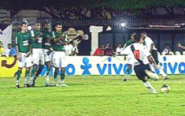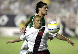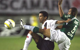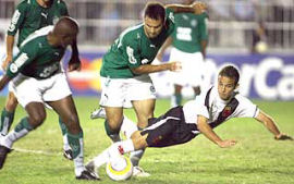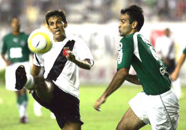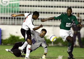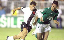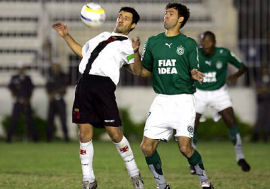 | NETVASCO - 16/09/2006 - 20:07 - Vasco empata mais uma em casa: 0 a 0 contra o Goiás Em noite inspirada do goleiro Harlei e seus zagueiros, o Goiás segurou o empate por 0 a 0 com o Vasco, neste sábado, no Rio, pelo Brasileiro. Embora o resultado não tenha sido bom para o time esmeraldino, foi muito pior para o carioca, que manteve seu jejum de vitórias e se afastou da zona de classificação para a Libertadores. Com o empate, o Vasco - que atingiu sua sexta partida sem vitória na temporada - foi a 36 pontos e se manteve na quinta posição, mas deve cair na tabela e ainda ver os quatro primeiros colocados se distanciarem com o complemento da rodada. Já o Goiás foi a 29 e perdeu duas posições, caindo da 13ª para a 15ª, mais perto do grupo do rebaixamento. O resultado alimenta a má fase do Vasco, que não vence desde o dia 27 de agosto, quando fez 2 a 1 no Inter. Depois, o time perdeu os dois jogos contra o Corinthians, pela Copa Sul-Americana, e empatou três partidas pelo Brasileiro - contra Ponte Preta, Fluminense e Grêmio. Enquanto isso, o Goiás não conseguiu dar seqüência à sua tentativa de reação no Brasileiro. Depois de amargar um longo jejum de 11 jogos seguidos sem vitória e se aproximar da zona do rebaixamento, o time venceu duas partidas consecutivas, mas empatou as duas últimas. Desta forma, por outro lado, manteve uma invencibilidade de quatro jogos. Vasco e Goiás voltam a campo na próxima quarta-feira para a disputa da 25ª rodada do Campeonato Brasileiro. Enquanto o time carioca vai a São Paulo para enfrentar o Corinthians, às 22h, o goiano recebe o Atlético-PR no Serra Dourada, às 20h30. O JOGO As equipes entraram com postura ofensiva e o Goiás ameaçou primeiro logo aos 2min. Nonato recebeu cruzamento da direita e cabeceou à queima-roupa, mas Cássio salvou o Vasco no susto. O lance animou o Goiás, que voltou a chegar com perigo aos 19min. Jadílson deu um drible desconcertante em Wagner Diniz e cruzou da esquerda. Nonato cabeceou no segundo pau e Johnson tentou o chute sem ângulo, mas a defesa afastou. A resposta do Vasco veio no minuto seguinte. Jean recebeu dentro da área em boas condições de marcar e chutou forte, mas a bola bateu na zaga do Goiás e foi rechaçada na seqüência. O time visitante criava várias chances através de cruzamentos para a grande área, mas os atacantes Nonato e Johnson desperdiçavam, para desespero do técnico Geninho. "Abre o olho para cabecear!", gritou o treinador do banco para o angolano. O Vasco tinha dificuldades para chegar ao gol adversário e só voltou a ameaçar através de bola parada, aos 34min. Ramon cobrou quase da linha de fundo direto para o gol e por pouco não enganou Harlei, mas o goleiro espalmou no alto. Inspirado, Ramon voltou a levar perigo ao Goiás aos 38min. O meia chutou forte da entrada da área e novamente obrigou Harlei a se esticar para espalmar no alto, no meio do gol. O Vasco passou a jogar melhor e quase abriu o placar aos 47min. Em cobrança de falta da direita, Ramon cruzou para a grande área na cabeça de Igor, que testou forte, mas Harlei novamente salvou o Goiás com uma defesa espetacular. "Ele fez milagre. O Igor cabeceou muito bem", lamentou Ramon na saída para o intervalo. A equipe da casa voltou com tudo para o segundo tempo e deu o primeiro chute logo aos 4min. Faioli recebeu livre na área, pela esquerda, e bateu cruzado, mas em cima de Harlei, que espalmou. Dois minutos depois, Andrade cobrou falta com violência da entrada da área e o goleiro do Goiás outra vez rebateu. Contudo, o Goiás respondeu aos 8min. Johnson recebeu lançamento pelo alto na grande área e cabeceou bem, mas Cássio também fez grande defesa no alto, colocando para fora. O jogo era lá e cá e o Vasco perdeu a melhor chance aos 13min. Morais tabelou com Jean na meia direita, ficou de frente para Harlei e tocou por cima do goleiro, mas a bola tocou no travessão. No rebote, Faioli não aproveitou. O bombardeio cruzmaltino continuou, desta vez pela esquerda, aos 15min. Diego tabelou com Faioli, passou por Harlei e ficou com o gol escancarado na sua frente, mas chutou fraco e Aldo salvou o Goiás com a ponta da chuteira. Aos 23min, Abedi entrou livre pela direita e chutou cruzado, mas o goleiro novamente espalmou. Mas mesmo com toda a pressão vascaína, o Goiás se fechou bem na defesa e conseguiu segurar o 0 a 0 até o apito final. GALERIA