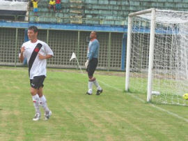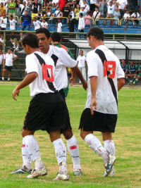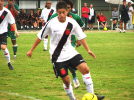 | NETVASCO - 14/01/2007 - 17:50 - Vasco goleia o Villa Rio no 1º amistoso do ano: 4 a 0 O Vasco goleou o Villa Rio por 4 a 0 na tarde deste domingo (14/01), sob muita chuva em Resende (RJ), em seu primeiro amistoso na temporada 2007. O destaque do time foi o estreante Darío Conca, que atuou por 45 minutos, deu passes para dois gols e ainda marcou um, de pênalti. Segundo a prefeitura de Resende cerca de 2.500 espectadores acompanharam a partida, embora outras fontes tenham falado em até 5 mil torcedores presentes no estádio para prestigiar o primeiro jogo do Vasco no ano. O treinador Renato Gaúcho mandou a campo um time conhecido da torcida, com dez jogadores pertencentes à base de 2006. A única novidade era o atacante André Dias, vindo do Iraty-PR. Já o Villa Rio - derrotado na última 4ª-feira pelo Cabofriense por 7 a 1 em amistoso - apresentava o zagueiro Tepedino, que além de jogador de futebol é lutador de vale-tudo. O Clube da Colina começou assustando. Logo aos dois minutos, Morais fez jogada pela direita e passou a Leandro Amaral, que acertou a trave do goleiro Chico. Aos 11 minutos a dobradinha Morais-Leandro Amaral funcionou de novo e foi mortal: Morais iniciou contra-ataque e serviu Leandro Amaral, que chutou fraco, rasteiro, do meio da área para fazer o primeiro gol vascaíno na temporada. O Vasco ainda teve um gol corretamente anulado aos 37 minutos da etapa inicial. Abedi chutou em direção à meta e André Dias, em posição de impedimento, completou para as redes. Se o estreante não tivesse tocado na bola, o lance teria sido validado. "Eu vi um jogador do adversário ali. Além disso o Abedi tocou de trás, eu estava atrás da linha da bola", tentou justificar André Dias no intervalo. Para o segundo tempo, o técnico Renato trocou os 11 jogadores, pondo em campo um time que mesclava caras novas e velhos conhecidos: Roberto; Wagner Diniz, Jorge Luiz, Anderson Luiz (contratado em 2006, estava no Duque de Caxias) e Sandro (veio do Vitória, já havia atuado em 2006); Roberto Lopes, Ives, Marcelinho (ex-Confiança-SE) e Darío Conca (ex-Rosario Central-ARG), Valdiram e Alessandro (ex-Juventude). E foi justamente a contratação mais badalada do Vasco para 2007, Darío Conca, que iniciou a jogada do segundo gol. Ele lançou Sandro, que chutou para a defesa de Chico. No rebote, o estreante Alessandro completou para as redes. Aos 17 minutos, Valdiram fez boa jogada, com direito à sua marca registrada, a pedalada, e passou a Wagner Diniz, que foi derrubado dentro da área por Sidicley. Darío Conca cobrou o pênalti no canto oposto do goleiro Chico e marcou seu primeiro gol com a camisa cruzmaltina. Aos 36 minutos, Darío Conca fez a jogada mais bonita da tarde. O argentino recebeu a bola na linha de fundo, avançou em direção à área, deu um drible curto no zagueiro Bruno e cruzou para Valdiram, que completou para o gol. Vasco 4 a 0. O Vasco volta a campo às 16h de sábado (20/01), também em Resende, para seu segundo e último amistoso da pré-temporada. O adversário ainda não foi definido, mas poderá ser o Madureira ou Tupi-MG. A estréia cruzmaltina no Estadual está marcada para o dia 24, às 19h30min, contra o Nova Iguaçu, em São Januário. GALERIA
