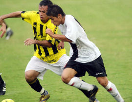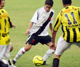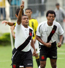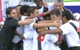 VÍDEO FICHA TÉCNICA VASCO 6 X 1 VOLTA REDONDA Competição: Campeonato Estadual (1º Turno - Taça Guanabara - 1ª Fase - Grupo B - 4ª Rodada) Estádio: São Januário, no Rio de Janeiro (RJ). Data: 11/fevereiro/2007 (domingo). Hora: 16h (Horário de Brasília/Horário de verão). Árbitro: Péricles Bassols Pegado Cortez (RJ). Assistente Nº 1: Wagner de Almeida Santos (RJ). Assistente Nº 2: Claudio José de Oliveira Soares (RJ). 4º Árbitro: Agnaldo Xavier Farias (RJ). Acréscimo 1º tempo: 0' Acréscimo 2º tempo: 3' Público: 1.672 pagantes. Renda: R$ 17.990,00. Gols: Leandro Amaral 20'/1ºT (VAS), Leandro Amaral (cabeça) 5'/2ºT (VAS), André Dias 18'/2ºT (VAS), Romário (cabeça) 23'/2ºT (VAS), Romário 30'/2ºT (VAS), Amaral 32'/2ºT (VOL), Romário (cabeça) 34'/2ºT (VAS). Cartões Amarelos: Amaral 16'/1ºT (VAS), Júlio César 27'/1ºT (VOL), André Dias 4'/2ºT (VAS), Thiago Maciel 7'/2ºT (VAS). Cartões Vermelhos: - VASCO: 1 - Cássio; 2 - Thiago Maciel, 3 - Fábio Braz, 4 - Jorge Luiz e 6 - Diego; 9 - Ives, 5 - Amaral (16 - Renato 19'/2ºT), 10 - Abedi e 8 - Conca (17 - Mádson 26'/2ºT); 9 - André Dias (11 - Romário 20'/2ºT) e 19 - Leandro Amaral [cap]. Técnico: Renato Gaúcho. Rservas não-utilizados: 12 - Roberto, 13 - Wagner Diniz, 14 - Gustavo Breda e 15 - Roberto Lopes. VOLTA REDONDA: 1 - Lázaro; 2 - Júlio César, 5 - Ailson [cap], 3 - Alemão e 4 - Hamilton; 6 - Léo, 11 - Cadu (17 - Gláuber 14'/2ºT), 8 - Adriano Felício (18 - Welton, intervalo) e 10 - Sérgio Manoel; 7 - Amaral e 9 - Fábio. Técnico: Moreno. Reservas não-utilizados: 12 - Sandro, 13 - Germano, 14 - Allan, 15 - Fábio Duarte e 16 - Marcos Baiano. Observações: Jogo disputado sob chuva. O meia Renato fez sua estréia no Vasco. Com os 3 gols que marcou, Romário chegou a 990 e ficou a 10 do milésimo. O árbitro trocou os tempos dos cartões amarelos de Thiago Maciel (na verdade 7/2ºT, na súmula 16'/1ºT) e Amaral (na verdade 16'/1ºT, na súmula 7'/2ºT). Embora o árbitro não tenha dado acréscimo no 1º tempo, ele colocou na súmula que estendou a etapa inicial em 1 minuto. Fonte: Lancenet (texto), NETVASCO (ficha), GloboEsporte.com (fotos e vídeo), VipComm (fotos) |