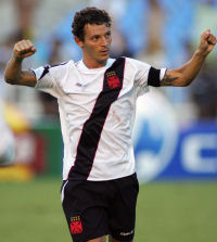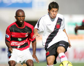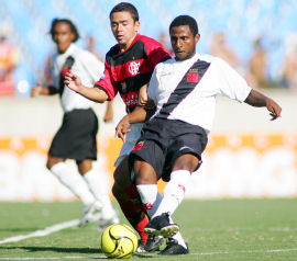 | NETVASCO - 25/02/2007 - 18:17 - Vasco perde nos pênaltis e está fora da Taça Guanabara O Flamengo está na decisão da Taça Guanabara. Após empate por 1 x 1 no tempo normal, o Rubro-Negro bateu o Vasco por 3 x 1, na disputa de pênaltis, e se qualificou para decidir com o Madureira quem levará o primeiro turno do Carioca. Obina para o Fla e Marcelinho para os cruzmatinos foram os artilheiros no tempo normal. A primeira partida das finais será no próximo domingo, às 16 horas, com o confronto decisivo sendo realizado na quarta-feira, dia 7 de março, também no Maracanã. O duelo não poderia ter começado melhor para o Fla. Antes mesmo de ser completado o segundo minuto de partida, o lateral-direito cruzmaltino Eduardo escorregou e Obina não teve problema para dominar e bater rasteiro, abrindo o placar no Mário Filho. O atacante rubro-negro, no entanto, sairia de campo logo após fazer o gol, pois torcera o joelho esquerdo após a finalização. O treinador Ney Franco colocou Roni no lugar do artilheiro. Ainda aturdidos com o golpe inicial, os vascaínos foram em busca da igualdade. Aos quatro, Conca teve boa chance, mas o chute cruzado bateu na zaga contrária, que aliviou o perigo. O Flamengo saía rápido nos contra-golpes e, com velocidade no ataque, assustava o rival. Aos 23, Renato Augusto recebeu cruzamento da esquerda e escorou de cabeça para Souza, porém a bola correu e passou bem perto do poste direito de Cássio. A resposta do Vasco veio no minuto seguinte, com Ives arriscando de fora da área e por muito pouco não acertando o canto direito. Mas aos 30, Leandro Amaral levou a marcação de Leonardo Moura e cruzou para Marcelinho (novidade na escalação cruzmaltina em lugar de André dias), de peixinho, deixar tudo igual no clássico. O empate fazia justiça ao duelo, pois não havia supremacia de nenhuma das equipes. Buscando obter nova vantagem até o intervalo, entretanto, o Flamengo apertou nos minutos finais. Aos 44, Juan chutou cruzado, mas a bola bateu na zaga contrária (Fábio Braz tirou com o peito), que evitou o segundo da equipe da Gávea. O Vasco voltou sem alterações para a etapa final, mas o Rubro-Negro tinha Leandro Salino em lugar Claiton no meio-campo. No primeiro minuto, Conca bateu forte da entrada da área e Bruno fez boa defesa para escanteio. A resposta do Fla veio em seguida, com Roni cruzando da direita e Souza, de carrinho, completando para fora, com perigo. Aos 10 minutos, Conca cobrou falta da direita, o zagueiro rubro-negro Moisés desviou de cabeça, porém o goleiro do Fla, bem colocado, pegou com segurança. Aos 17m nova infração para o Vasco. Diego cobrou bem, mas a bola saiu rente ao poste esquerdo. A seguir, o Flamengo passou a ter mais volume de jogo, porém sem produzir lances de perigo. Aos 40, Leonardo Moura fez boa jogada individual e finalizou para fora, no último grande momento durante o tempo regulamentar. O duelo, então, foi para os pênaltis, aumentando a adrenalina no Maracanã. Os cruzmaltinos bateram primeiro: Leandro Amaral bateu e fez. Vasco 1 x 0. Renato enche o pé a acerta o travessão: 1 x 0 Dudar cobrou e Bruno defendeu com os pés: 1 x 0 Leonardo Moura colocou no canto direito e igualou: 1 x 1 Amaral bateu no canto esquerdo, mas para fora: 1 x 1 Renato Augusto aproveitou o seu, não dando chances para Cássio: 1 x 2 Diego cobrou rasteiro e Bruno salvou novamente com os pés: 1 x 2 Souza deslocou Cássio e colocou o Fla nas finais da Taça GB: 1 x 3. GALERIA