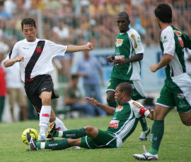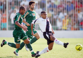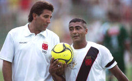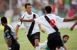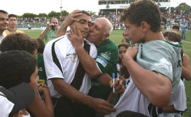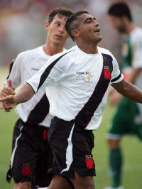 | NETVASCO - 17/03/2007 - 18:01 - ROMÁRIO FAZ 3 E VASCO GOLEIA BOAVISTA: 6 A 2 No Vasco, o objetivo era chegar ao clássico contra o Flamengo, no próximo fim de semana, com 100% de aproveitamento na Taça Rio. Em grande estilo e com direito a mais três gols de Romário, esta marca foi atingida após a goleada por 6 a 2 sobre o Boavista, no estádio Eucy Resende de Mendonça, em Saquarema. Agora com seis pontos na tabela, a equipe assume a liderança isolada no Grupo B - pelo menos até o complemento da rodada, neste domingo. O rival deste sábado segue sem pontuar no segundo turno na outra chave. O time de São Januário iniciou a partida dando a impressão de que conseguiria facilmente a vitória. Logo aos 2min, quando Leandro Amaral aproveitou um cruzamento Wagner Diniz e marcou o primeiro. Mesmo com o 'gol relâmpago', o Boavista conseguiu equilibrar as ações e empatou com Flávio Santos, aproveitando sobra do goleiro Cássio. Irritado com a atuação do time, o técnico Renato Gaúcho promoveu as entradas do meia Abedi e do atacante André Dias - nas vagas de Amaral e Conca - antes do intervalo. Na etapa final, o Vasco fez prevalecer sua melhor condição técnica e conseguiu virar o marcador, com três gols de Romário, sendo um de pênalti. Com isso, o atacante fica a apenas dois do milésimo, de acordo com suas contas. A intenção da comissão técnica vascaína era obter um lastro em sua chave até a partida diante do Fla, para que, em caso de derrota no confronto, a classificação para as semifinais não ficasse prejudicada. No clássico, o time rubro-negro deve utilizar uma equipe repleta de reservas, já que, depois de garantir vaga na decisão do Estadual com o título da Taça Guanabara, a Libertadores da América virou prioridade na Gávea. Entretanto, antes de enfrentar seu principal rival, o Vasco volta a campo pela Copa do Brasil. Na quarta-feira, a equipe vai até Brasília enfrentar o Gama, às 20h30. Na tentativa de se aproximar ainda mais da meta que ainda move sua carreira, Romário ressaltou a intenção de enfrentar o adversário na competição nacional. Apesar disso, o técnico Renato Gaúcho já adiantou que o jogador não deve ser escalado, sendo poupado para o clássico. GALERIA