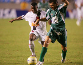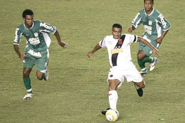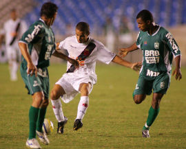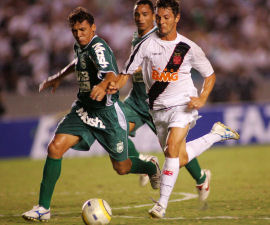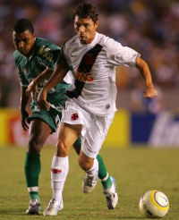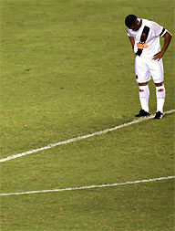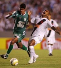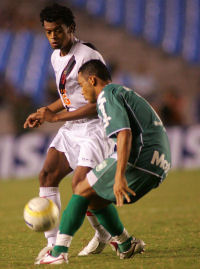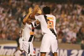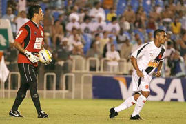 | NETVASCO - 04/04/2007 - 23:47 - VASCO PERDE PARA GAMA E DÁ ADEUS À COPA DO BRASIL: 2 A 1 Romário não chegou ao milésimo gol mais uma vez. Pior ainda para o Vasco que foi eliminado da Copa do Brasil ao ser superado pelo Gama, por 2 x 1, na noite desta quarta-feira, no Maracanã. O gol cruzmaltino foi assinalado por Renato, enquanto Rodrigo Ninja e Marcelo Uberaba fizeram para os candangos. Agora, o Vasco volta suas atenções para o Campeonato Carioca, onde encara a Cabofriense, neste domingo, às 16h, em Cabo Frio, pela sexta é ultima rodada da Taça Rio, segundo turno do Estadual. Já o Gama, pela Copa do Brasil, encara o Figueirense nas oitavas-de-final da competição. O Vasco começou a partida sendo surpreendido. Logo no primeiro minuto Rodrigo Ninja arriscou de longe, Cássio falhou e a bola morreu no fundo da rede: Gama 1 x 0. Refeito do susto, o Vasco foi para cima. Aos dez, Morais arrematou e Juninho salvou. Dois minutos depois, o troco do Gama. Valdeir cabeceou e Cássio se redimiu evitando o segundo gol dos candangos. Mas o Vasco não demorou e chegou ao empate. Aos 15 minutos, após cruzamento de Morais, Renato, com um leve desvio, mandou a bola de cabeça para o fundo da rede: 1 x 1. O gol animou o time cruzmaltino. Aos 22, Amaral fez boa jogada individual e chutou. O zagueiro Denis salvou praticamente em cima da linha. No minuto seguinte, Romário ajeitou para Morais. O meia, dentro da área, tocou, mas Juninho defendeu. Na busca pelo seu milésimo gol, Romário teve apenas uma única chance no primeiro tempo. Aos 35 minutos, após cobrança de escanteio, a bola veio para o Baixinho, que tentou tocar por cima do goleiro. Juninho defendeu parcialmente e zaga do Gama afastou o perigo. O segundo tempo começou com o Gama quase desempatando. Aos 40 segundos, após cruzamento da esquerda, Neto Potiguar testou e Cássio defendeu com segurança. O Vasco tentava alguma coisa, mas sem sucesso. O Gama, na boa, assustava. Aos 12 minutos, Marcelo Uberaba bateu falta, Cássio foi no ângulo esquerdo e fez ótima defesa, espalmando a bola para escanteio. A partir daí, o jogo ficou equilibrado, sem chances para as duas equipes. Somente aos 31 minutos que o Vasco quase virou. Após tabelar com Morais, Abedi fuzilou e Juninho defendeu. Aos 40, quase a eliminação do Vasco. Márcio Goiano arriscou de longe e Cássio colocou a bola para escanteio, realizando mais uma grande intervenção. Dois minutos depois, foi a vez do Vasco. Guilherme, que entrou no lugar de Rubens Júnior, recebeu na esquerda e arrematou. Juninho tocou na bola, que ainda tocou na trave direita. Porém, no fim, aos 48 minutos, Fábio Braz cometeu falta desnecessária próximo a área. Marcelo Uberaba cobrou e converteu, decretando a eliminação do Vasco. GALERIA