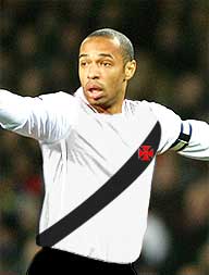 - Vou entregar o kit do Vasco, com camisa, CD e a bandeira do clube ao Henry. De repente, fazer uma proposta para ele - diz, em tom de bricandeira. Recentemente, o volante Denílson, seu companheiro de clube, comentou que Henry costuma cantar (ou assobiar) o hino do Vasco na concentração. Fonte: NETVASCO (texto), GloboEsporte.com (texto e montagem) Notícia relacionada: 23/03/2007 - 20:23 - Thierry Henry gosta de cantar o hino do Vasco |