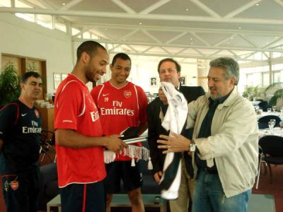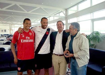 | NETVASCO - 25/04/2007 - 17:11 - Confira fotos de Thierry Henry com a camisa do Vasco O Vice-Presidente de Futebol do Vasco, José Luís Moreira, esticou uma viagem a Portugal até a Inglaterra para entregar um presente especial. O dirigente cruzmaltino visitou o craque francês Thierry Henry, do Arsenal, depois de tomar conhecimento que o atacante costuma cantar o hino do Vasco na concentração. A curiosa revelação foi feita por um companheiro de equipe, o jovem meio-campo Denilson, que trocou o São Paulo pelo clube londrino, ao site Estação Tricolor, feito por torcedores do São Paulo. Henry foi campeão mundial pela França em 1998 e marcou o gol que eliminou o Brasil na última Copa. No Arsenal desde 1999, o camisa 14 conquistou vários títulos e se tornou o maior artilheiro da história do clube. O atacante de 29 anos já foi apontado três vezes como melhor jogador do ano pela "Football Writers Association". José Luís Moreira presenteou Thierry Henry com um kit do Vasco, contendo a camisa oficial nº11 do Romário, um CD do hino do clube, e outros brindes. O atacante também deu ao dirigente uma camisa que traz a dedicatória "Vasco, forever" (Vasco, para sempre) e cantou "Vasco, Vasco", como a torcida cruzmaltina. "A receptividade do pessoal do Arsenal e de Thierry Henry, assim como de Gilberto e Denílson foi muito boa. Eles ficaram emocionados de ver a gente entregando essa camisa ao Thierry. Ele a recebeu cantando como se fosse um grande torcedor do Vasco. Isso para nós é um motivo de grande orgulho, de saber que aqui nessa terra onde o futebol também é uma grande paixão, tem um jogador do nível dele e que realmente gosta muito do Vasco da Gama". Na entrevista que provocou essa homenagem, Denilson também disse que o clube cruzmaltino é muito conhecido em terras britânicas. O sucesso vascaíno talvez seja explicado por dois motivos: 1) O Vasco é imbatível no confronto direto com o Arsenal. Em toda a história, os clubes se enfrentaram três vezes, com três vitórias cruzmaltinas. A primeira aconteceu em 1949, quando ambos vinham de títulos na temporada anterior. Os campeões ingleses estavam invictos numa excursão pelo Brasil, mas foram derrotados por 1x0 pelos campeões sul-americanos, no estádio de São Januário completamente lotado (estimativa de 60 mil torcedores); O segundo fracasso dos Gunners aconteceu em 1951. Os campeões da FA Cup na temporada anterior levaram uma goleada de 4x0 para o Vasco no Maracanã; A terceira e última derrota dos londrinos para os vascaínos foi no Torneio de Belgrado em 1980. Os então campeões da Copa Inglesa perderam por 2x1. 2) Por outro lado, o Vasco já deu uma alegria muito grande aos torcedores do Arsenal. Um dos seus grandes rivais na Inglaterra, o Manchester United viu sua fama de melhor time do mundo cair por terra quando enfrentou o Gigante da Colina no Mundial de Clubes da FIFA em 2000. O Maracanã assistiu uma inesquecível vitória vascaína por 3x1, com um show da dupla Edmundo e Romário. Foi o fim da seqüência de conquistas internacionais do Manchester United, que traziam na bagagem os títulos da Liga dos Campeões da Europa e da Toyota Cup, em cima do Palmeiras. ![]() ![]() ![]() ![]() ![]() Clique aqui para acessar a fotogaleria. Fonte: Site oficial do Vasco |