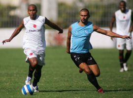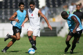 | NETVASCO - 01/05/2007 - 11:09 - Vasco empata com Silva Jardim em jogo-treino: 0 a 0 O time titular do Vasco ficou apenas no empate de 0 a 0 em um jogo-treino realizado na manhã desta terça-feira em São Januário contra o Silva Jardim, equipe que disputa a Copa Rio e está na Segunda Divisão do Campeonato Carioca. A equipe principal disputou os primeiros 45 minutos. Já a etapa final foi disputada pelos reservas. Romário, assim como no feriado do dia de São Jorge, não apareceu no dia do trabalho. O Baixinho tem feito um programa diferenciado do restante do grupo para ficar na melhor forma física. O Vasco criou apenas três chances de gol, duas com Abedi e uma com Amaral, em um chute de fora da área. Amaral ainda apareceu ao fazer muitas faltas durante a movimentação. Celso Roth armou a equipe no 4-5-1, liberando Abedi para encostar mais no ataque. O Vasco entrou com: Cássio, Thiago Maciel, Fábio Braz, Jorge Luiz e Rubens Júnior; Roberto Lopes, Amaral, Renato Morais e Abedi; André Dias. Já o Silva Jardim entrou com: Vinícius, Vaguinho, Celso, Ronie e Vinícius Silva; Marcelo, Fabiano, Mirita e Tércio; Hernande e Guilherme. Após o empate do time titular no primeiro tempo, os reservas também não conseguiram marcar durante o segundo tempo e a igualdade no marcador seguiu até o fim. O Vasco chegou a fazer um gol com Alan Kardec, mas o atacante fez falta no zagueiro adversário e o gol foi anulado. A melhor oportunidade do jogo acabou sendo do Silva Jardim com Hernande, que foi revelado pelo Vasco, ao aproveitar bobeada de Dudar e Diego e ficar sozinho com o goleiro Roberto. No entanto, Hernande finalizou por cima do gol evitando um vexame ainda maior da equipe vascaína. A formação do Vasco no segundo tempo foi: Roberto, Eduardo, Diego, Dudar e Guilherme; Júnior, Coutinho, Rafael e Conca; Martin e Alan kardec. GALERIA