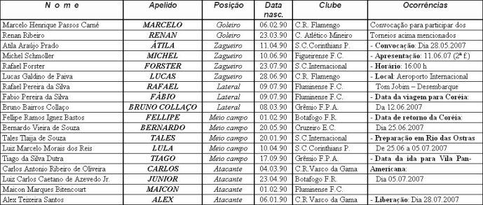 | NETVASCO - 28/05/2007 - 18:25 - Atacantes Alex Texeira e Carlos são convocados para o Pan O técnico da Seleção Brasileira Sub-17, Lucho, convocou nesta segunda-feira, na sede da CBF, os jogadores que disputarão o Torneio Internacional 8 Nações Sub-17 na Coréia do Sul, de 16 a 23 de junho, e o Pan-Americano do Rio de Janeiro, de 12 a 27 de julho. Veja a lista dos atletas convocados ![]() ![]() ![]() Fonte: CBF News (texto e imagem), Site oficial do Vasco (foto) |