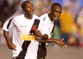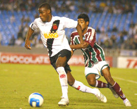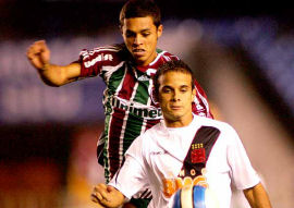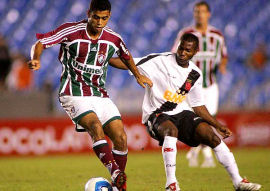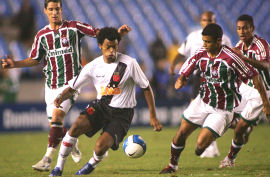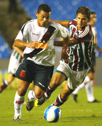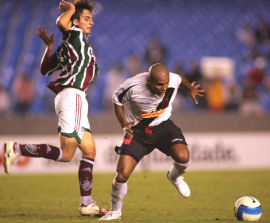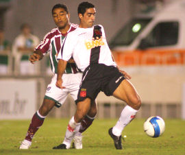 | NETVASCO - 03/06/2007 - 20:07 - Vasco empata com Fluminense 'B' no Maracanã: 1 a 1 No confronto entre Vasco e os reservas do Fluminense, na noite deste domingo, no Maracanã, pela quarta rodada do Campeonato Brasileiro, ficou tudo igual, 1 a 1. Abedi marcou o gol do Gigante da Colina e Rafael fez o do Tricolor. Com o resultado, o Vasco foi a oito pontos e está na quarta posição da competição. Já o Fluminense foi a cinco e está em décimo. O Vasco começou melhor e teve a primeira boa chance do jogo aos 11 minutos, quando Romário achou o lateral-esquerdo Guilherme com um bom passe, ele cruzou na área, mas Morais, em boas condições para o chute, não conseguiu a finalização. Depois disso, o Gigante da Colina se manteve melhor na partida. Porém, não conseguiu levar muito perigo. O Fluminense só conseguiu criar uma boa oportunidade aos 25 minutos. Thiago Neves fez bom cruzamento da ponta esquerda e Rafael Moura escorou para fora. E o Vasco acabou sendo premiado por estar melhor em campo. Aos 29 minutos, Abedi fez boa jogada, passou com facilidade pela marcação de Ânderson e, de fora da área, mandou com força no cantinho, sem chances para Fernando Henrique: 1 a 0. O gol não fez a equipe cruzmaltina diminuir o ritmo e quase ampliou o marcador aos 32. André Dias serviu Romário e o Baixinho bateu com perigo, a bola pegou na rede pelo lado de fora. O Fluminense só conseguia levar perigo em lances isolados, como aos 33, quando Rafael cruzou da direita e Rafael Moura cabeceou para fora. Depois disso o Tricolor ganhou gosto pelo jogo e novamente ficou perto do empate com um belo chute de fora da área de Thiago Neves que passou acima do gol de Silvio Luiz. Depois de melhorar na partida, o Fluminense conseguiu chegar à igualdade no marcador. Aos 39 minutos, Thiago Neves cobrou falta da direita para a área e Rafael, meio de cabeça meio de ombro, desviou por cima de Silvio Luiz. Após o gol do Tricolor as duas equipes não fizeram mais nada e o primeiro tempo terminou mesmo 1 a 1. A segunda etapa começou devagar, mas com uma pequena superioridade do Fluminense, que chegou perto de fazer o segundo logo aos 11 minutos, quando Tiuí recebeu cruzamento de Thiago Neves e bateu com força, a bola bateu em Dudar e passou com perigo. O Tricolor continuou melhor e, aos 27, quase chegou ao segundo. Em jogada de contra-ataque, Thiago Neves chutou de fora da área com perigo, mas foi individualista demais, porque Rodrigo Tiuí estava sozinho na entrada da área. O Vasco só acordou dois minutos depois, quando Thiago Maciel cruzou na cabeça de André Dias, que obrigou Fernando Henrique a fazer boa defesa. A situação ficou ainda melhor para o Vasco aos 36 minutos, quando Maurício errou passe no meio-de-campo, fez falta para parar a jogada e, como já tinha cartão amarelo foi justamente expulso. Três minutos após a expulsão do volante tricolor, Amaral bateu falta com violência e quase marcou, a bola passou muito perto do gol de Fernando Henrique. No entanto, o Vasco não conseguiu aproveitar a vantagem numérica em campo e a partida terminou no empate de 1 a 1. Agora, o Fluminense volta suas atenções para a decisão da Copa do Brasil, na próxima quarta-feira, contra o Figueirense, em Florianópolis. Pelo Campeonato Brasileiro, o Tricolor volta a campo no próximo domingo, contra o Sport, às 16h, no Maracanã. Já o Vasco encara o Grêmio, no sábado, às 18h10min, em São Januário. GALERIA