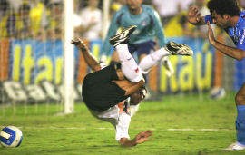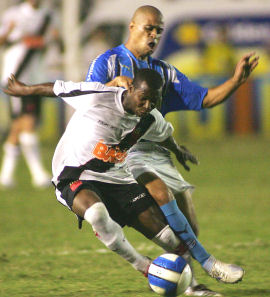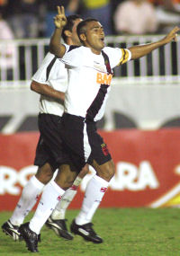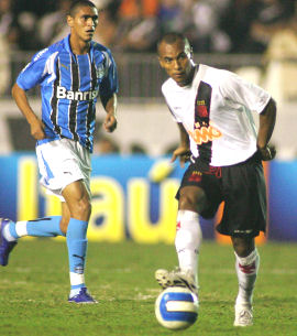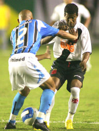 | NETVASCO - 09/06/2007 - 20:51 - VASCO GOLEIA GRÊMIO 'B' POR 4 A 0 E É LÍDER DO BRASILEIRÃO Comandado por Romário, o Vasco chegou à liderança do Campeonato Brasileiro ao golear o Grêmio por 4 a 0, neste sábado, em São januário. Apresentando um bom futebol, o time não teve dificuldades para vencer o Tricolor Gaúcho, que escalou os reservas pensando na final da Libertadores contra o Boca Juniors. Com o resultado, o time cruzmaltino chegou aos 11 pontos, mesmo número de pontos do Botafogo. A diferença ficou no saldo de gols, já que o Vasco tem sete e o Botafogo cinco. Os gols foram marcados por Romário (dois), André dias e Abedi. Agora, o Vasco precisa torcer para o Corinthians não vencer o América-RN, em Natal, neste domingo. Logo quando a bola rolou, ficou claro o modo que os dois time iriam jogar: o Grêmio se defendendo e o Vasco partindo para cima. As melhores jogadas do time cruzmaltino estavam saindo pelo lado esquerdo. Abedi e Guilherme organizavam as principais ações ofensivas por este setor. Tanto que, aos 13 minutos, Guilherme, em um lançamento perfeito, achou André Dias dentro da área. O Zagueiro Nunes, atropelou o atacante, fazendo pênalti claro. O batedor não poderia ser outro: Romário partiu para a bola e marcou o gol de número 1001, no mesmo lado do campo aonde marcara o seu gol histórico, contra o Sport. Quem achou que o Baixinho se limitaria a marcar um gol de penalidade, se enganou. O camisa 11 mostrou toda a sua categoria, sendo o principal organizador de jogadas do ataque vascaíno, dando inúmeros passes de primeira. Após o gol, o Vasco continuou indo para cima e mantendo o controle total do jogo. Até o técnico Celso Roth, sempre chamado de retranqueiro, mandava os seus jogadores saírem com velocidade. Já o Tricolor gaúcho estava totalmente omisso em campo. O time se limitava a tentar marcar os donos da casa. Lucas e Amoroso, os dois jogadores do Grêmio que esperava-se algo mais, não foram vistos no gramado. A supremacia cruzmaltina era tanta que a ausência do segundo gol já estava se tornando incômoda. Por isso, Abedi, na direita, cruzou para André Dias completar de cabeça, aos 42 minutos. O atacante chegou à vice-artilharia da competição, com quatro gols. Josiel, do Paraná, tem sete. Com o Grêmio totalmente perdido em campo, Romário não iria deixar a oportunidade de fazer mais um gol. O atacante recebeu dentro da área, girou para cima do zagueiro e marcou o seu terceiro gol no campeonato, aos 46 minutos. Falha do goleiro Galatto. O Baixinho ainda correu para abraçar Celso Roth, desmentindo que haja qualquer problema de relacionamento com o treinador. No intervalo, a partida ficou paralisada por mais de uma hora devido a um apagão em São Januário. O árbitro Wilson Luiz Seneme só quis recomeçar o jogo quando a luz voltasse por completo. A atitude gerou protesto do presidente do Vasco, Eurico Miranda, que entrou em campo para pedir o início do segundo tempo. Já o Grêmio não queria o reinício da partida. Depois de tudo normalizado, Seneme começou a segunda etapa. Em campo, o panorama continuava praticamente o mesmo. A diferença é que Amoroso pôde ser notado em campo. Ao receber a bola dentro da área, o atacante matou no peito e isolou a grande chance gremista no jogo. A resposta veio logo em seguida, Thiago Maciel foi driblando e rolou para Abedi. O xodó da torcida bateu com muita categoria para fazer o quarto gol. Dessa vez o volante pôde homenagear o filho sem tomar cartão amarelo. Depois disse o Vasco puxou o freio de mão e só administrou o placar. Final de jogo: Vasco, líder do Campeonato Brasileiro com muitos méritos. Pois, mesmo sendo um fraco time do Grêmio, o Vasco demonstrou uma equipe, que apesar de limitada, cumpre com aplicação o esquema do técnico Celso Roth. Além de contar com a qualidade e a estrela de Romário, que sempre brilha na hora certa. GALERIA