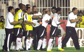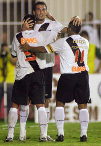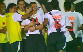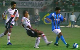 VÍDEO FICHA TÉCNICA VASCO 4 X 0 GRÊMIO Estádio: São Januário, Rio de Janeiro (RJ) Data/hora: 09/06/2007 - 18h10min (de Brasília) Árbitro: Wilson Luiz Seneme (Fifa-SP) Auxiliares: Edmilson Corona (Fifa-SP) e Nilson de Souza Monção (SP) Renda/público: R$ 155.850 / 15.519 pagantes Cartões amarelos: Renato, Amaral (VAS); Edmilson (GRÊ) GOLS: Romário, 14'/1ºT (1-0); André Dias, 42'/1ºT (2-0); Romário, 46'/1ºT (3-0); Abedi, 19'/2ºT (4-0); Romário, 14'/1ºT (1-0) VASCO: Silvio Luiz, Thiago Maciel, Jorge Luiz, Dudar e Guilherme; Amaral, Roberto Lopes (Júnior, 22'/2ºT), Abedi (Conca, 26'/2ºT) e Renato; André Dias (Martin Garcia, 32'/2ºT) e Romário. Técnico: Celso Roth. GRÊMIO: Galatto, Jucemar, Pereira , Nunes e Bruno Teles; Edmilson, Willian Magrão (Thiego, Intervalo), Lucas (Itaqui, 32'/2ºT) e Ramon; Kelly (Everton, 18'/2ºT) e Amoroso. Técnico: Mano Menezes Fonte: Lancenet (texto e ficha), VipComm (fotos), GloboEsporte.com (fotos) |