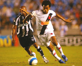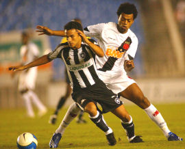| NETVASCO - 14/06/2007 - 22:30 - Vasco é goleado pelo Botafogo e cai para 3º: 4 a 0 Sem nenhuma dificuldade, o Botafogo mostrou quem é o verdadeiro líder do Campeonato Brasileiro e venceu o Vasco por 4 a 0, nesta quinta-feira, no Maracanã. Dodô, duas vezes, Juninho e Leandro Guerreiro marcaram pelos alvinegros. Com o resultado, o time comandado pelo técnico Cuca tem 14 pontos e se isola na primeira posição. O Vasco permanece com 11 pontos, no segundo lugar. Desde o apito inicial de Paulo César Oliveira, o Botafogo se mostrou melhor em campo. Dois minutos foram suficientes para que abrissem o placar. Zé Roberto fez boa jogada pela direita, driblou o estreante Thiago e cruzou rasteiro para Dodô. O artilheiro dos gols bonitos dominou e acertou belo chute no ângulo esquerdo de Sílvio Luiz. Em desvantagem no placar, o clube da Colina correu para buscar o empate. Porém, o time esbarrou nas próprias limitações e na boa atuação do sistema defensivo, principalmente do cabeça-de-área Leandro Guerreiro. Com o ritmo cadenciado, o Botafogo tinha o controle total do jogo. Sem pressa, o time pareceu escolher o momento de fazer o segundo gol. Aos 17 minutos, o Botafogo decidiu ir ao ataque novamente e o Vasco foi obrigado a interromper a jogada com falta, curiosamente cometida por Romário. Juninho cobrou com força, de muito longe, e contou com a ajuda de Sílvio Luiz, que caiu atrasado: Botafogo 2 a 0. Se antes a missão do Vasco já era difícil, com dois gols contra no placar, ficou ainda mais complicada. Os jogadores sentiram isso e mostraram desequilíbrio emocional e desorganização. Romário, em vez de se movimentar na frente, voltou para marcar e chegou até a cobrar escanteios. Mal o segundo tempo começou, o Botafogo não quis saber da entrada no Vasco de Leandro Amaral, que retornou de lesão depois de dois meses afastado dos gramados. Aos três minutos, Leandro Guerreiro, um dos melhores do Glorioso, mandou uma bomba no ângulo direito de Silvio Luiz. O goleiro vascaíno, que trocou o uniforme no intervalo, permaneceu incapaz de evitar o massacre botafoguense. Enquanto na primeira etapa o Botafogo pareceu não se importar em acelerar o ritmo do jogo, na segunda o Alvinegro se mostrou disposto em aplicar uma goleada histórica. Aos 12 minutos, após cobrança de escanteio de Lúcio Flávio, Dodô, no segundo pau, escorou com categoria para fazer o quarto gol. A torcida alvinegra, a essa altura, praticamente assistia sozinha ao baile do Botafogo, já que os vascaínos deixaram o Maracanã antes mesmo dos 20 minutos de jogo. No fim, o atacante André Lima entrou em campo, mas o vice-artilheiro do Glorioso na temporada não conseguiu aproveitar a boquinha. No domingo, o embalado Botafogo enfrentará o Náutico, no Maracanã, enquanto o Vasco irá até o Morumbi para encarar o São Paulo. GALERIA