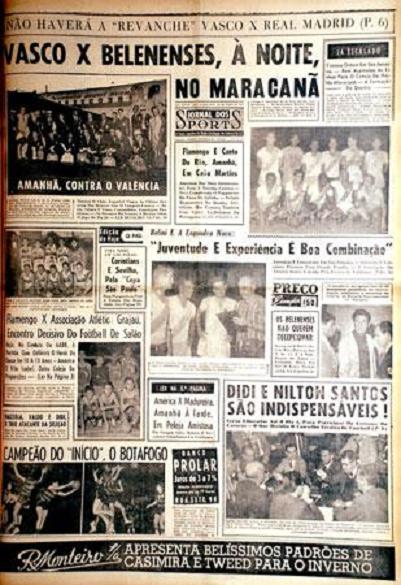 Capa do Jornal dos Sports de 19/06/1957 anunciando Vasco x Belenenses