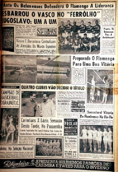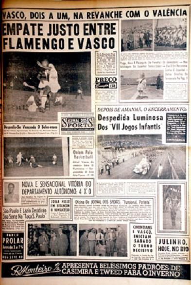 Capa do Jornal dos Sports de 27/06/1957, dia seguinte ao do empate contra o Flamengo