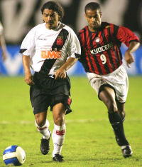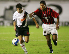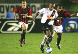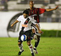 | NETVASCO - 12/07/2007 - 22:27 - LEANDRO AMARAL VOLTA A MARCAR E VASCO VENCE ATLÉTICO-PR: 1 A 0 Com um gol de Leandro Amaral aos 40 minutos do segundo tempo, o Vasco derrotou o Atlético Paranaense por 1 a 0 em partida disputada nesta quinta-feira, em São Januário, pelo Campeonato Brasileiro. Com o resultado, a equipe dirigida por Celso Roth chegou aos 17 pontos ganhos e agora ocupa a 4ª posição. Já o Furacão está na 13ª colocação com 14 pontos ganhos. O atacante não marcava há quase nove jogos (635 minutos em campo). Com a vitória, o Gigante da Colina mantém sua invencibilidade contra os paranaenses em São Januário. Em doze jogos, foram dez vitórias e dois empates. O Vasco também não perde em seu estádio há 16 jogos, onde mantém 100% de aproveitamento no Brasileiro, com quatro vitórias. A vitória do Vasco foi justa porque apesar de ter entrado com uma armação defensiva e não ter jogado bem, a equipe mostrou mais vontade de ganhar. Já o Furacão, sem vários titulares, adotou um esquema pouco ofensivo e acabou sendo castigado com mais uma derrota. Na próxima rodada, o Atlético Paranaense recebe o Juventude. O Vasco, que já cumpriu seu jogo pela 12ª rodada contra o Botafogo, recebe o Atlético Mineiro, no dia 21/07 (um sábado), às 18h10min, em São Januário. Armado com três zagueiros e apenas um atacante, o Vasco logo tomou a iniciativa diante de um adversário desfalcado. E a situação se complicou ainda mais para o técnico Antônio Lopes logo aos quatro minutos, quando o lateral Michel torceu o tornozelo direito e acabou substituído por Chico. Enquanto o time paranaense se defendia, o dono da casa mantinha a posse de bola, mas tinha pouca penetração porque o isolamento de Leandro Amaral na frente o impedia de dar seqüência às jogadas. O primeiro lance de perigo do time cruzmaltino aconteceu aos nove minutos, quando Wagner Diniz recebeu de Leandro Amaral, cortou para o meio e chutou por cima do travessão, assustando o goleiro Guilherme. Com o passar do tempo, o Vasco foi encontrando cada vez mais dificuldade em organizar jogadas de ataque, enquanto o rubro-negro paranaense não tinha qualquer ambição ofensiva e não criava problemas para a defesa adversária. Por volta dos 30 minutos, a torcida do Vasco perdeu a paciência com a falta de objetividade da equipe e começou a vaiar as jogadas erradas da equipe, principalmente as cometidas pelo volante Perdigão. Aos 33 minutos, os anfitriões criaram sua melhor oportunidade, quando Conca cobrou escanteio, Leandro Amaral tocou de primeira e o goleiro Guilherme salvou. O Atlético Paranaense começou o segundo tempo sem o lateral-direito André Rocha, que também se contundiu e obrigou Antônio Lopes a improvisar João Leonardo na posição. E foi do Rubro-negro a primeira jogada de perigo logo aos quatro minutos. Em uma cobrança de falta, o colombiano Ferreira obrigou Sílvio Luiz a fazer boa defesa. O técnico Celso Roth trocou o meia Ernane pelo atacante colombiano Martín García e o Vasco aumentou a pressão em busca do primeiro gol. Aos 14 minutos, o goleiro Guilherme saiu com precisão para evitar a conclusão de García. No minuto seguinte, Conca rolou para Leandro Amaral acertar bom chute de fora da área, obrigando o goleiro atleticano e mandar para escanteio. Aos 21 minutos, o Furacão criou sua primeira jogada de perigo. Dinei acertou um chute de fora da área e o goleiro Sílvio Luiz mandou para escanteio. O Vasco manteve a pressão, mas tinha dificuldade em furar a retranca armada pela equipe de Antônio Lopes. Aos 25 minutos, a arbitragem anulou um gol dos visitantes porque o lateral João Leonardo, que fez o cruzamento para Marcelo concluir, estava supostamente em posição de impedimento. A equipe cruzmaltina manteve a pressão, mas a forte marcação do oponente na intermediária impedia que o time carioca conseguisse chegar na área com chances de concluir. Aos 40 minutos, quando a torcida já começava a ir embora, o lateral Rubens Júnior cruzou da esquerda e o atacante Leandro Amaral se antecipou aos zagueiros e cabeceou para as redes. Foi o primeiro gol do artilheiro na competição. Nos minutos restantes, o Atlético tentou reagir, mas o Vasco não teve problema para segurar o resultado. GALERIA