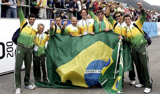 | NETVASCO - 19/07/2007 - 11:06 - Pan 2007: Brasil, com Gibran Cunha, é prata no Oito Com Mais uma medalha nos Jogos Pan-Americanos 2007 com a participação do Remo do Vasco. Depois do bronze dos chilenos Felipe Leal e Miguel Cerda, foi a vez de Gibran Vieira da Cunha ficar com a prata na prova Oito Com Timoneiro, disputada na manhã desta quinta-feira (19/07) na Lagoa Rodrigo de Freitas. Além do vascaíno Gibran, estavam no barco os remadores Renan Castro, Alexandre Ribas, Leandro Tozzo, José Roberto Nascimento Jr., Marcelus Marcili, Anderson Nocetti, Allan Bittencourt e o timoneiro Nilton Alonço, o "Gauchinho". O Brasil ficou em 2º lugar, com o tempo de 6m33s36. Os Estados Unidos ganharam o ouro finalizando o percurso de 2.000 metros em 6m22s47. O bronze foi para a Argentina, com 6m39s03. Esta não foi a primeira medalha do experiente Gibran (37 anos) em Jogos Pan-Americanos. Na edição de Winnipeg 1999, o atleta ficou com a prata na prova Dois Sem Timoneiro. Em Santo Domingo 2003, repetiu a mesma medalha de prata e ainda ganhou o bronze no Quatro Sem Timoneiro. O Remo do Brasil encerrou sua participação no Rio 2007 tendo conquistado 1 medalha de prata e 2 de bronze. Na edição anterior, Santo Domingo 2003, os remadores canarinhos faturaram 4 medalhas de prata e 2 de bronze. Vale destacar que a última medalha de ouro do remo brasileiro em Jogos Pan-Americanos aconteceu há 20 anos atrás, em Indianápolis 1987. Os irmãos Ricardo e Ronaldo Carvalho, que eram atletas do Vasco, subiram no lugar mais alto do pódio na prova Dois Sem Timoneiro. Ficha Técnica - Gibran Vieira da Cunha Nome: Gibran Vieira da Cunha Nascimento: 27/06/1970 Naturalidade: Lages (SC) Categoria: Quatro Sem, Oito Com Altura: 1,83m Peso: 89kg Títulos Campeão Sul-Americano: 1992, 1994 Campeão dos Jogos Sul-Americanos: 2002 Campeão do Troféu Brasil Sênior: 1996,1997,1998,1999,2001,2002 Campeão da Copa Sul Sudeste Sênior: 1998 Medalha de prata no 2-sem nos Jogos Pan-Americanos de Winnipeg: 1999 Medalha de prata no 2-sem nos Jogos Pan-Americanos de Santo Domingo: 2003 Medalha de bronze no 4-sem nos Jogos Pan-Americanos de Santo Domingo: 2003 Medalha de prata nos Jogos Sul-Americanos: 2006 Medalha de prata no Campeonato Sul-Americano: 1994 Medalha de bronze no Campeonato Sul-Americano: 1998 ![]() ![]() ![]() Gibran é o quarto da esquerda para a direita ![]() Gibran é o sexto da esquerda para a direita Entrevista com os remadores