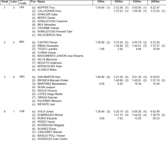 Resultado oficial do Oito ComFonte: Site oficial do Vasco (texto), Site oficial Rio 2007 (gráfico), GloboEsporte.com (fotos e vídeo), UOL (fotos) |