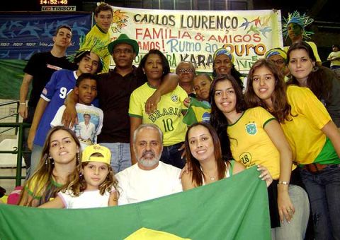 Mas o objetivo inicial de o pai de Carlos o matricular no caratê não foi ser um medalhista e sim parar quieto. "Eu era muito levado e meu pai resolveu me colocar para fazer algum tipo de luta para ver se eu me acalmava e acabou dando certo". Já são 16 anos de treinamento, que resultaram em grandes conquistas, como a medalha pan-americana, um título de Campeonato Pan-Americano e outro de Campeonato Sul-Americano, além de onze estaduais. Entre eles, um dos que mais o marcou foi seu primeiro campeonato estadual, em 1997. Carlos tinha 12 anos e ficou em primeiro lugar. A vontade de competir nos Jogos Pan-Americanos 2007 veio muito tempo antes, quando o Brasil foi definido como país-sede. "Quando soube que o Rio de Janeiro ia sediar o Pan 2007, fiquei muito motivado", conta. Assim, iniciou um forte ciclo de treinamentos que somaram três horas e meia por dia, com apenas o domingo de folga. Mesmo assim, ainda sobrava tempo para as outras atividades de Carlos, que, durante a semana, faz faculdade de Fisioterapia e trabalha dando aulas de caratê. Nos finais de semana, a prioridade é o descanso. "Nos finais de semana aproveito para descansar, sair com minha namorada e ir à igreja", conta. Aliás, a fé é algo presente durante as competições. "Sempre oro entres de entrar no tatame para lutar", revela o carateca. E ele garante que tem dado certo e por isso tinha ótimas expectativas para a competição de 2007. "Estou treinando forte para trazer a medalha de ouro. Espero poder divulgar ainda mais o caratê e levar o Brasil ao lugar mais alto do pódio, que é o mais importante". Não conseguiu seu objetivo principal, mas com certeza divulgou o nome do caratê, e com uma medalha de prata no peito. Nome completo: Carlos Eduardo Gonzaga Lourenço