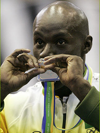 3-0 Andres Heredia (Equador) 5-3 Willian Finegan (Estados Unidos) 1-0 Leandro Monzon (Argentina) Semifinais: 3-2 Juan C. Valdez (República Dominicana - campeão no seu país, no Pan de Santo Domingo 2003) Final: 2-0 Mario Toro (Venezuela) Perfil de Juarez dos Santos: Juarez foi o primeiro brasileiro a lutar no caratê dos Jogos Pan-Americanos. E terminou como o primeiro carateca a conquistar a medalha de ouro. Mas seu começo foi da forma mais amadora possível. Com 11 anos, Wanderlei, um professor de caratê, chegou no bairro onde morava, no Rio de Janeiro, e começou a treinar a "garotada da rua". Ele, que já havia sido incentivado pela mãe a treinar o esporte, mas só não o fizera antes por morar muito longe de um treinador.