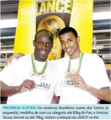 NETVASCO - 03/08/2007 - 00:39 - Karatecas do Vasco medalhistas no Pan visitaram redação de jornal![]() Vinícius Souza e Juarez Santos, caratecas que foram medalhistas no Pan, fazem um teste de popularidade no Centro do Rio. Assista na TV L! em http://www.lancenet.com.br/ Fonte: Lance |
